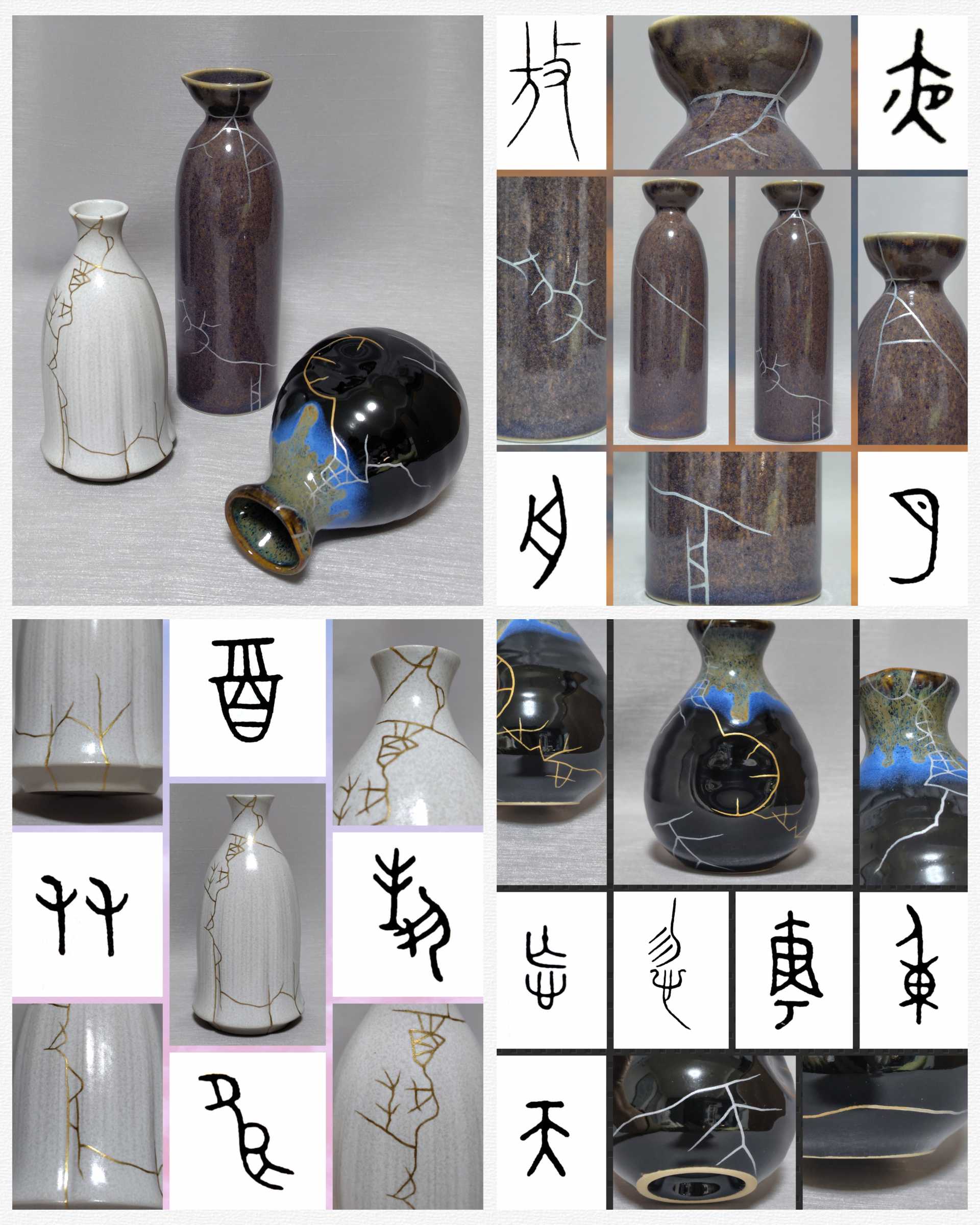 酒にまつわる詩句から文字を抜粋し、金文(No.8「把」のみ作字)で徳利に描く。