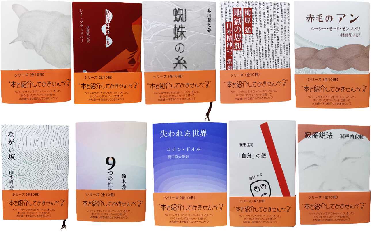 10冊の文庫本について、リバーシブルのブックカバーと表カバーデザインのポストカードを制作しました。