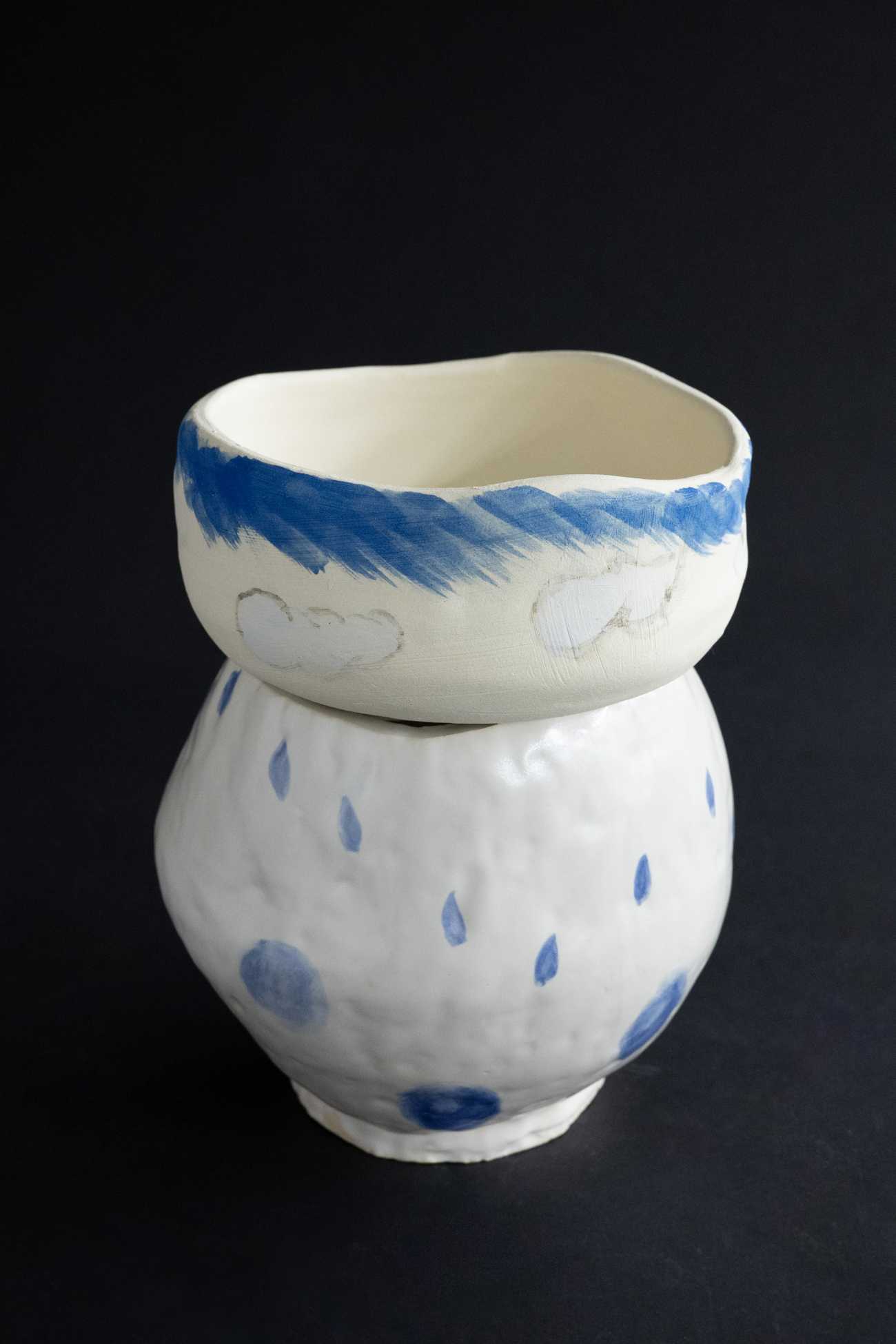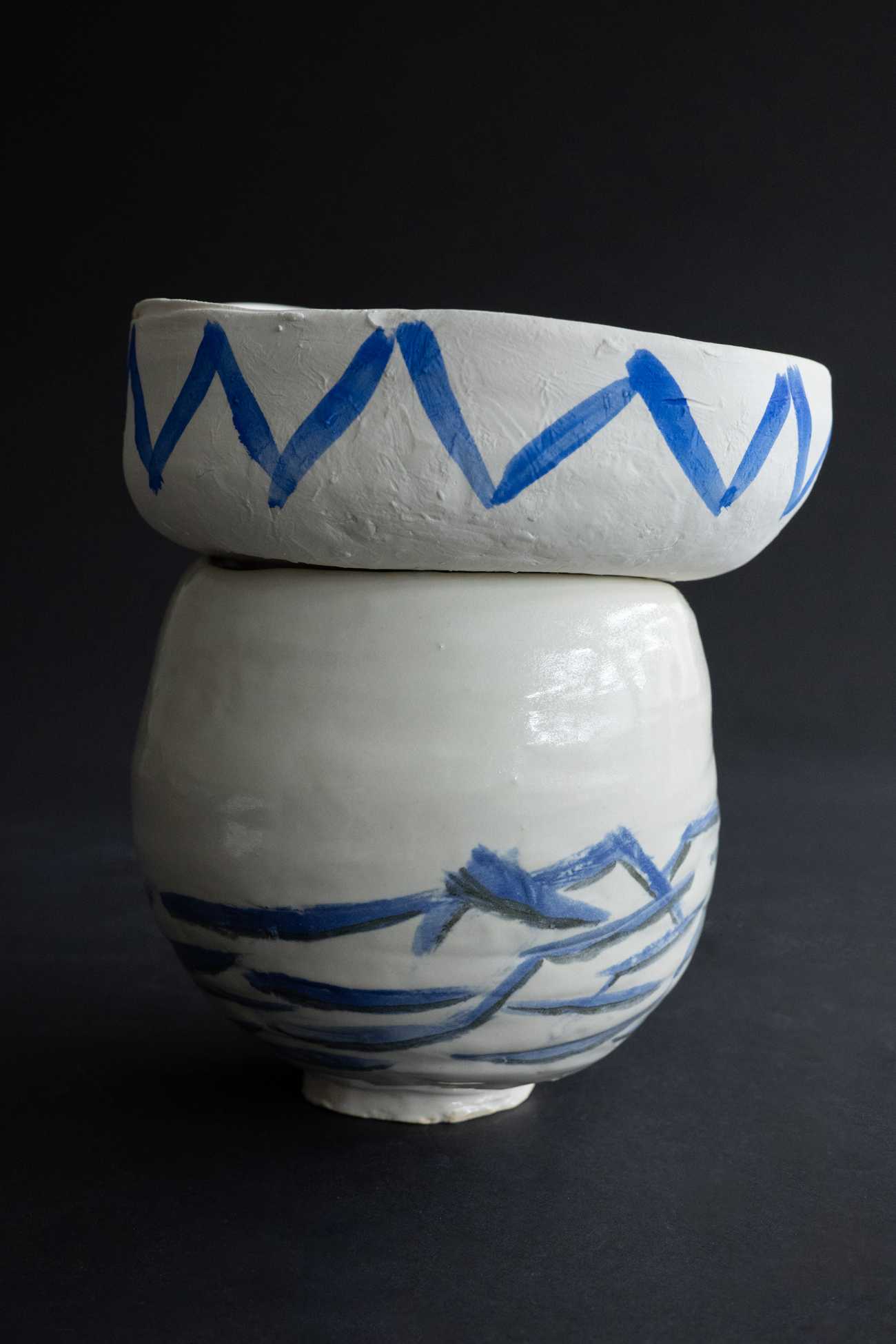 白土/上の器 焼締、下の器 白釉/下絵付