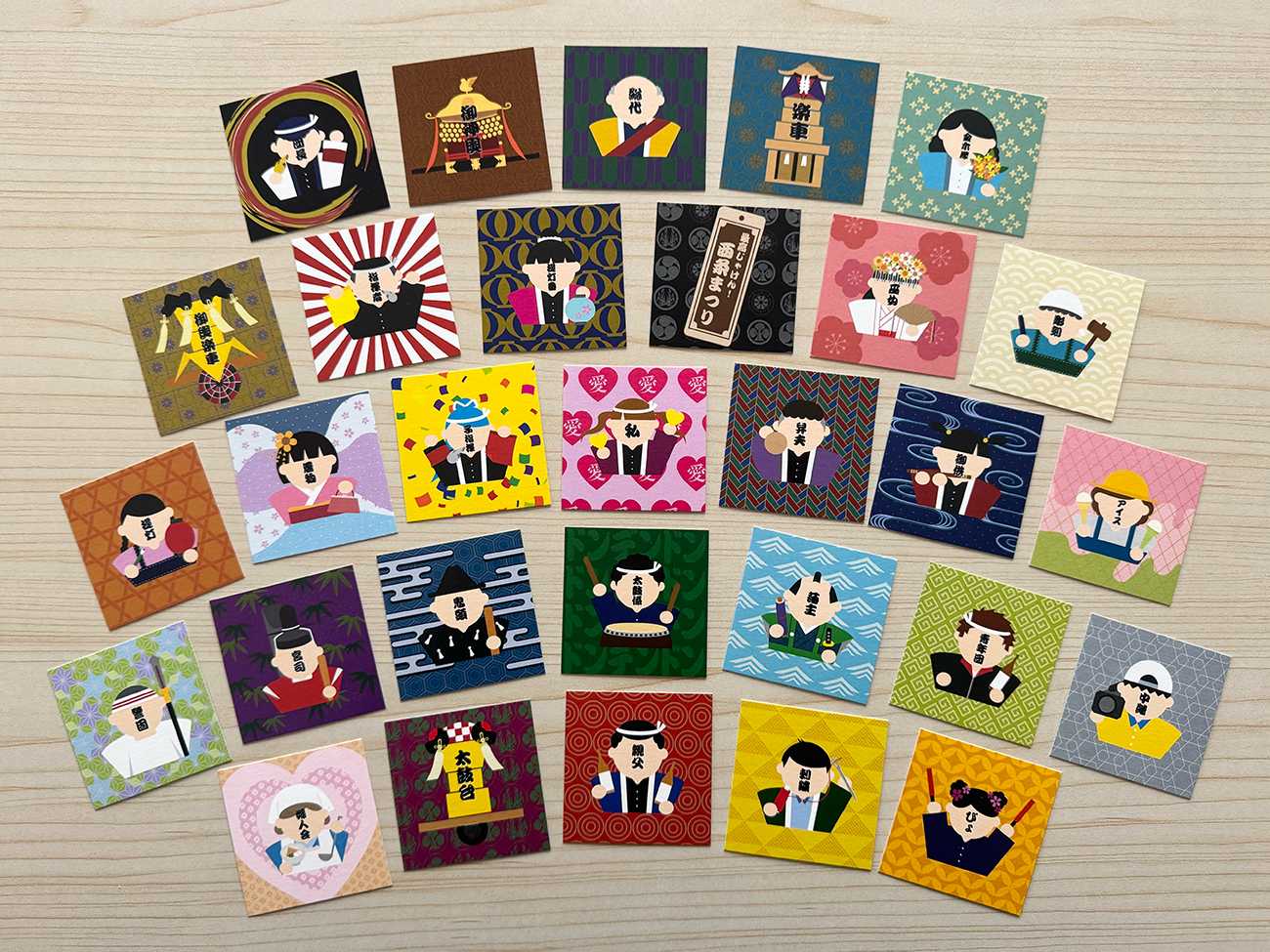 西条まつりを支える人々と屋台の役割を可視化し、形として残すことで、西条まつりを知るきっかけをつくりたいと考えました。ただ見るだけではなく、手に取り、集め、楽しみながら理解できる表現を目指しています。