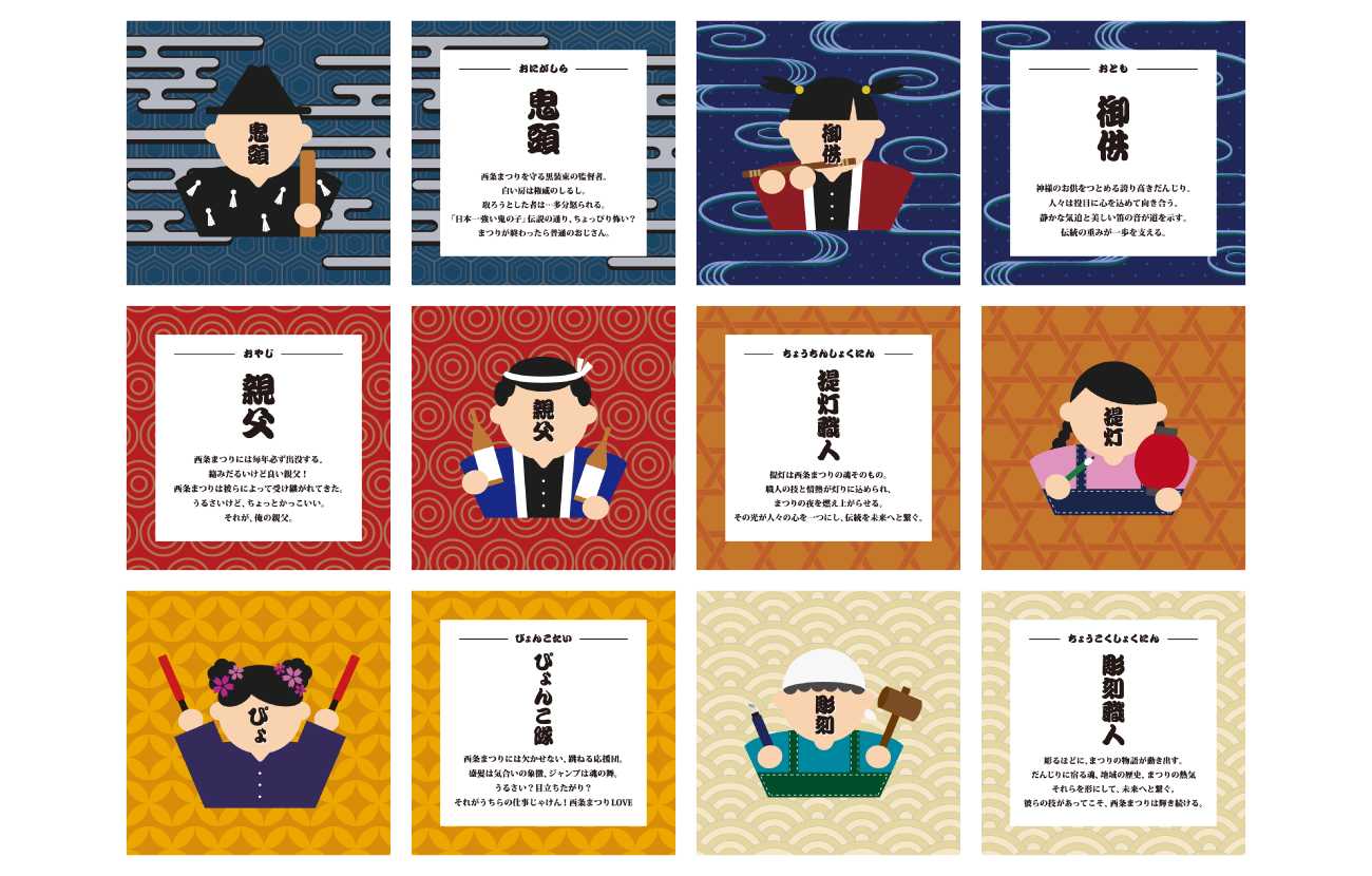 そこで本制作では、「西条まつりの見える化から始まる文化継承のためのデザイン」をテーマに設定しました。