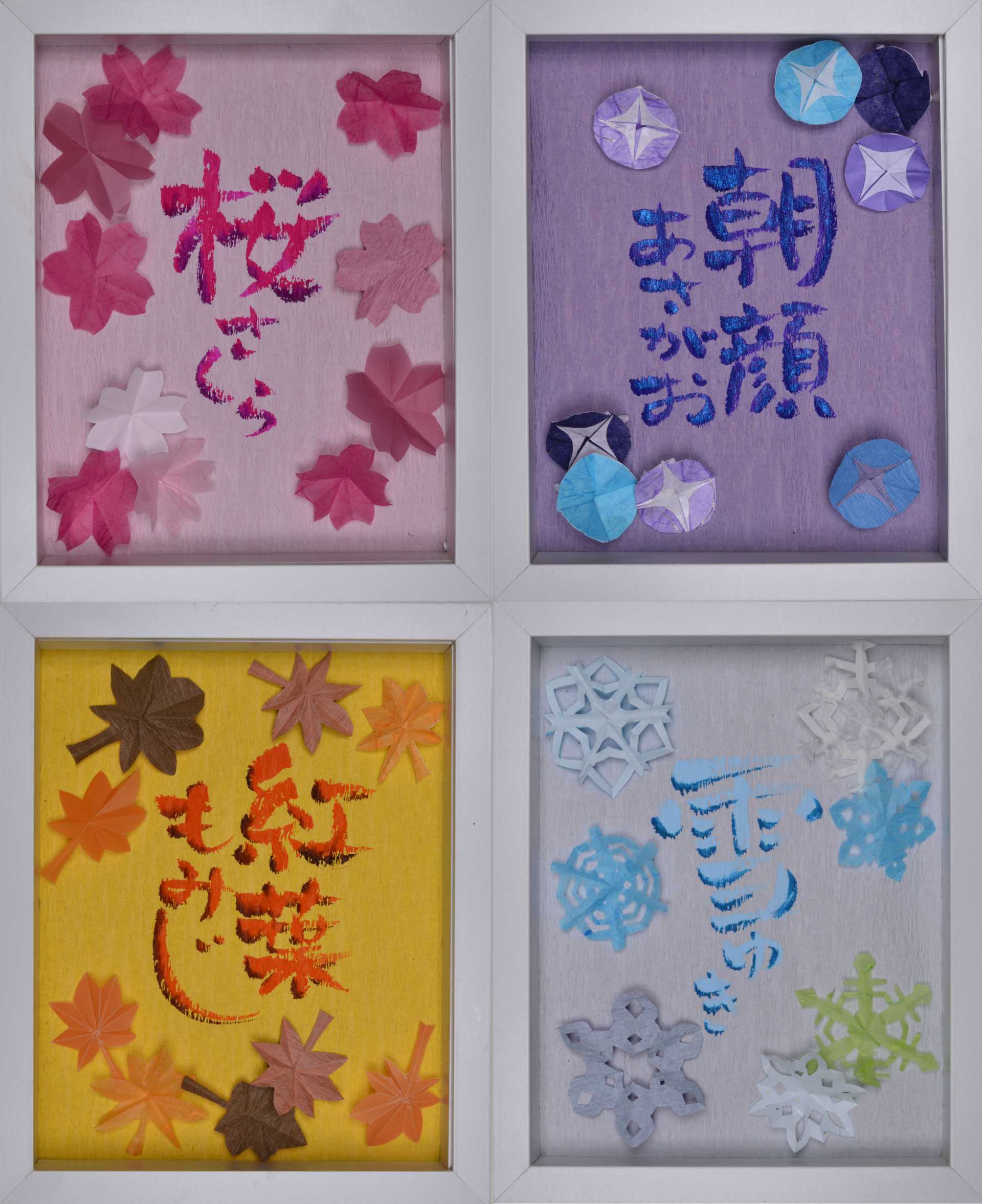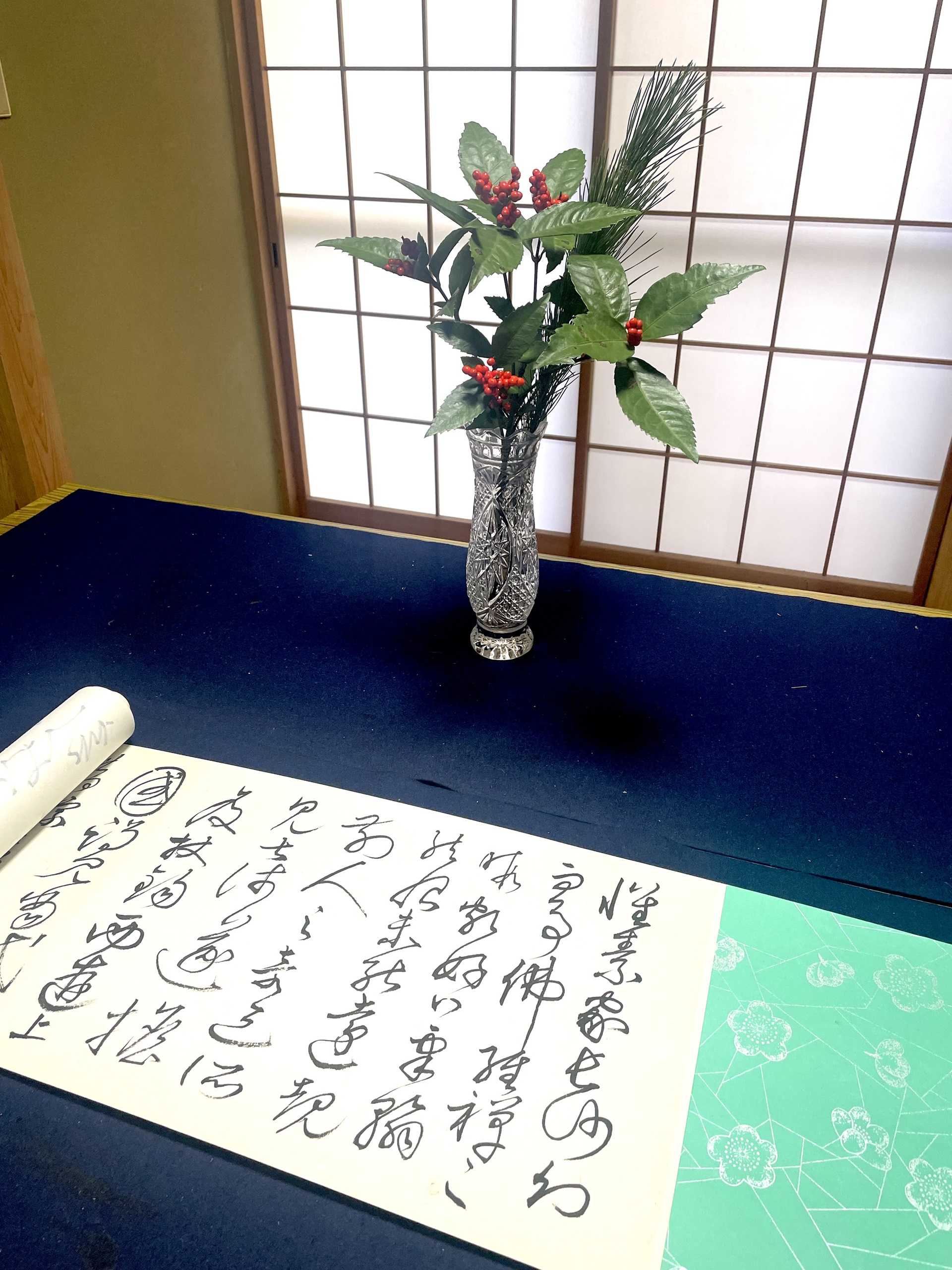 墨(青墨液)・紙(和紙 「古琴」)・顔彩・金墨