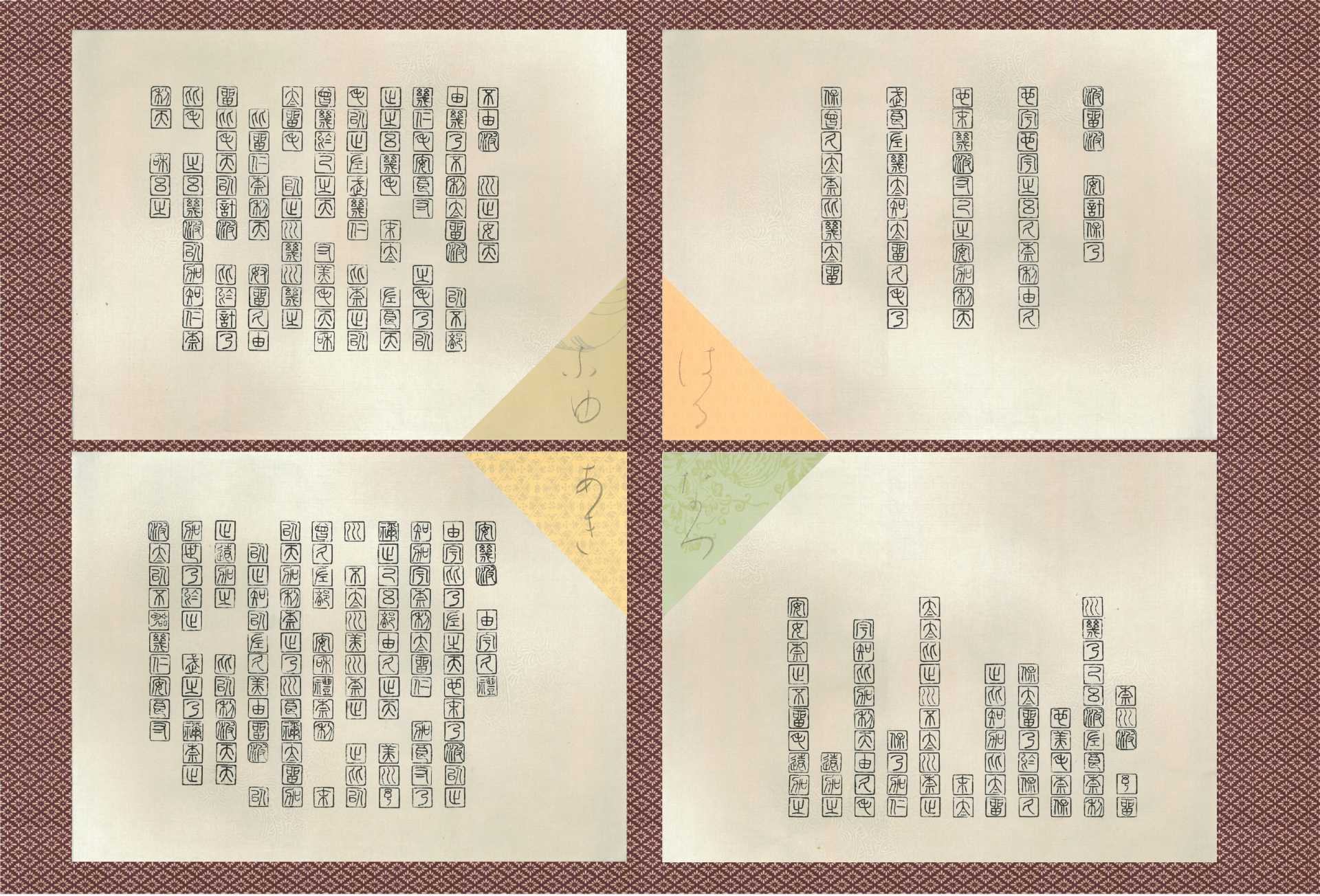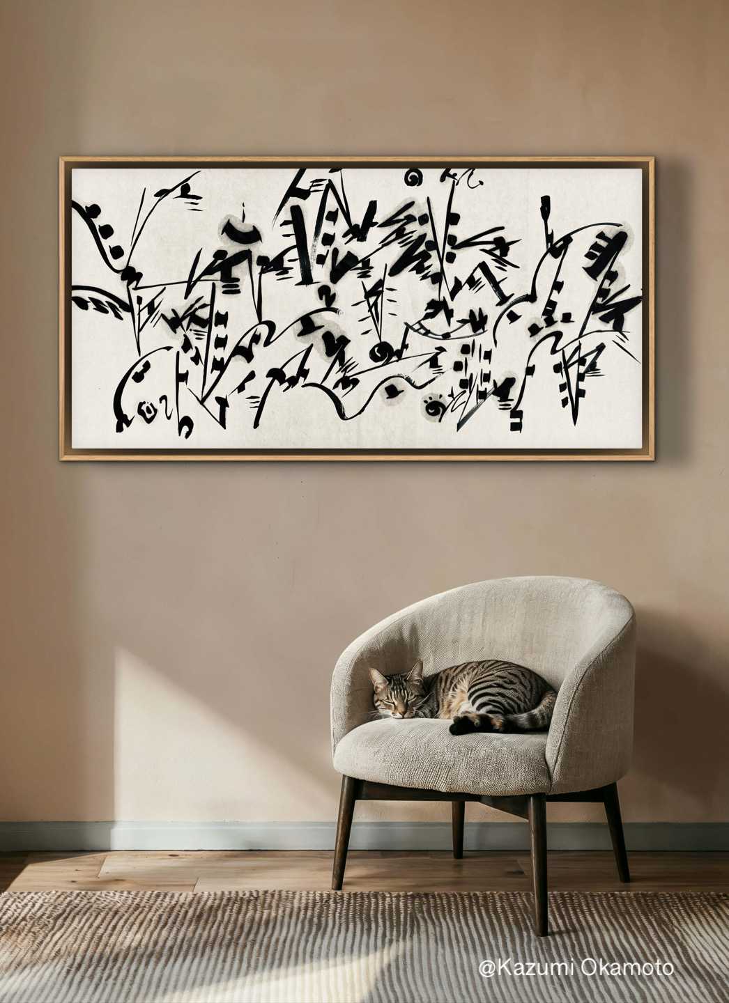 《Echo of Formlessness- Meaningless sounds(カタチなきものの残響-無音)》シリーズは、「書くという行為」よりも「聴く(考える)という行為」として志向する制作である。