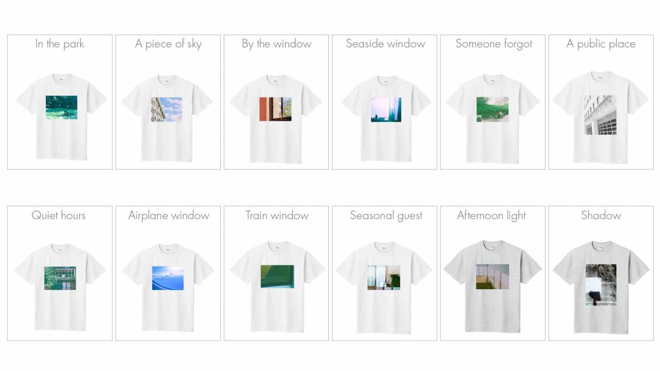 12タイトル(種類)のTシャツ。 ふと立ち止まって見てみると、美しい色や形に気づく日常の景色。