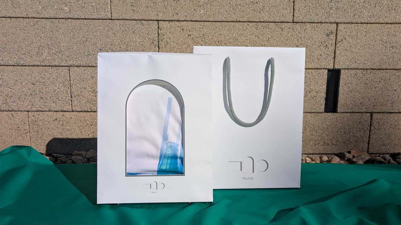 ショッパーとギフト用パッケージ。 ギフト用パッケージは、窓から見た景色がTシャツの柄になるような窓抜きデザイン。