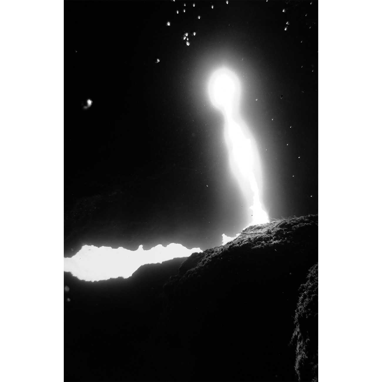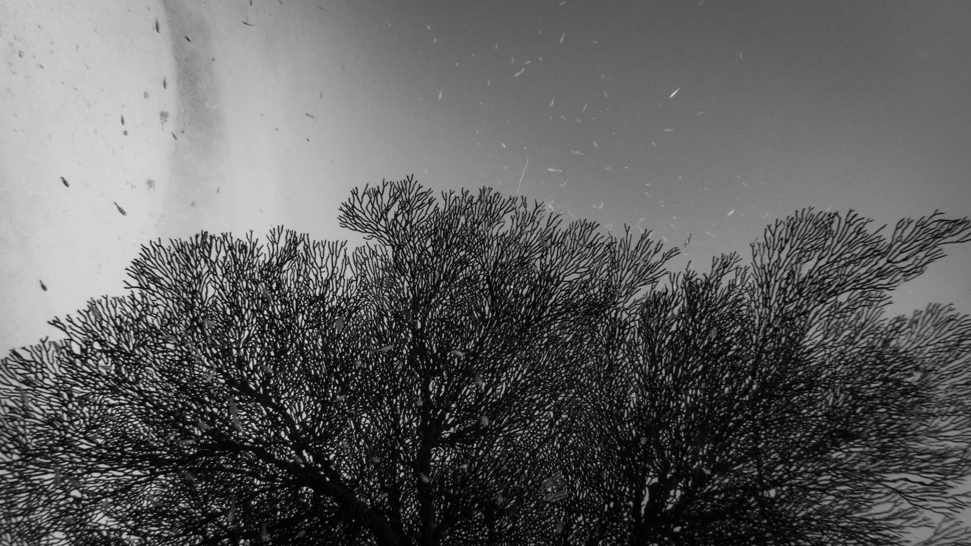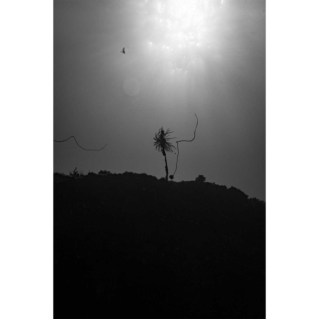 ふと水面を見上げると、色彩を奪われたその光景はなぜか陸上の風景のようにも、我々とよく似た別の世界のようにも見えた。