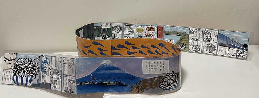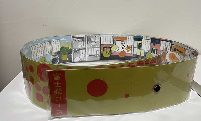 静岡県富士市にある、富士山をきれいに見ることができるスポットまでの地図漫画です。富士市の名産物に基づいたキャラクターと、道中を楽しむ内容です。