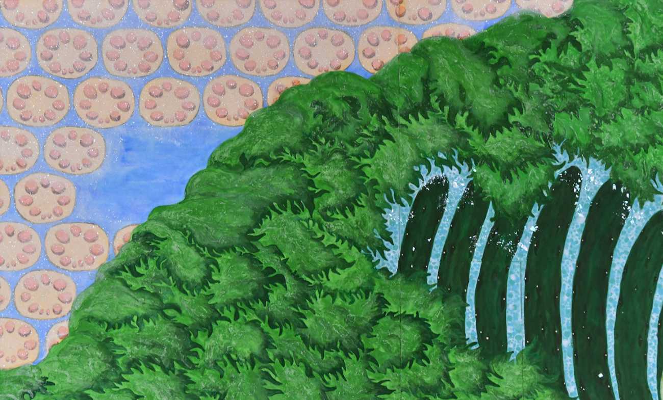 1220×1980 素材:雲肌麻紙、典具帖紙、薄美濃紙、膠、岩絵具、夜光貝