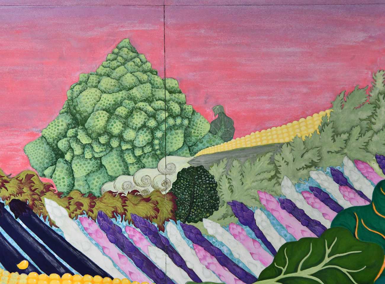 葛飾北斎の神奈川沖裏浪裏の波がフリルレタスに見えるようになり、そこからこの絵の全てのパーツを野菜で表現できないかという思考に至り、当てはめていくことにした。