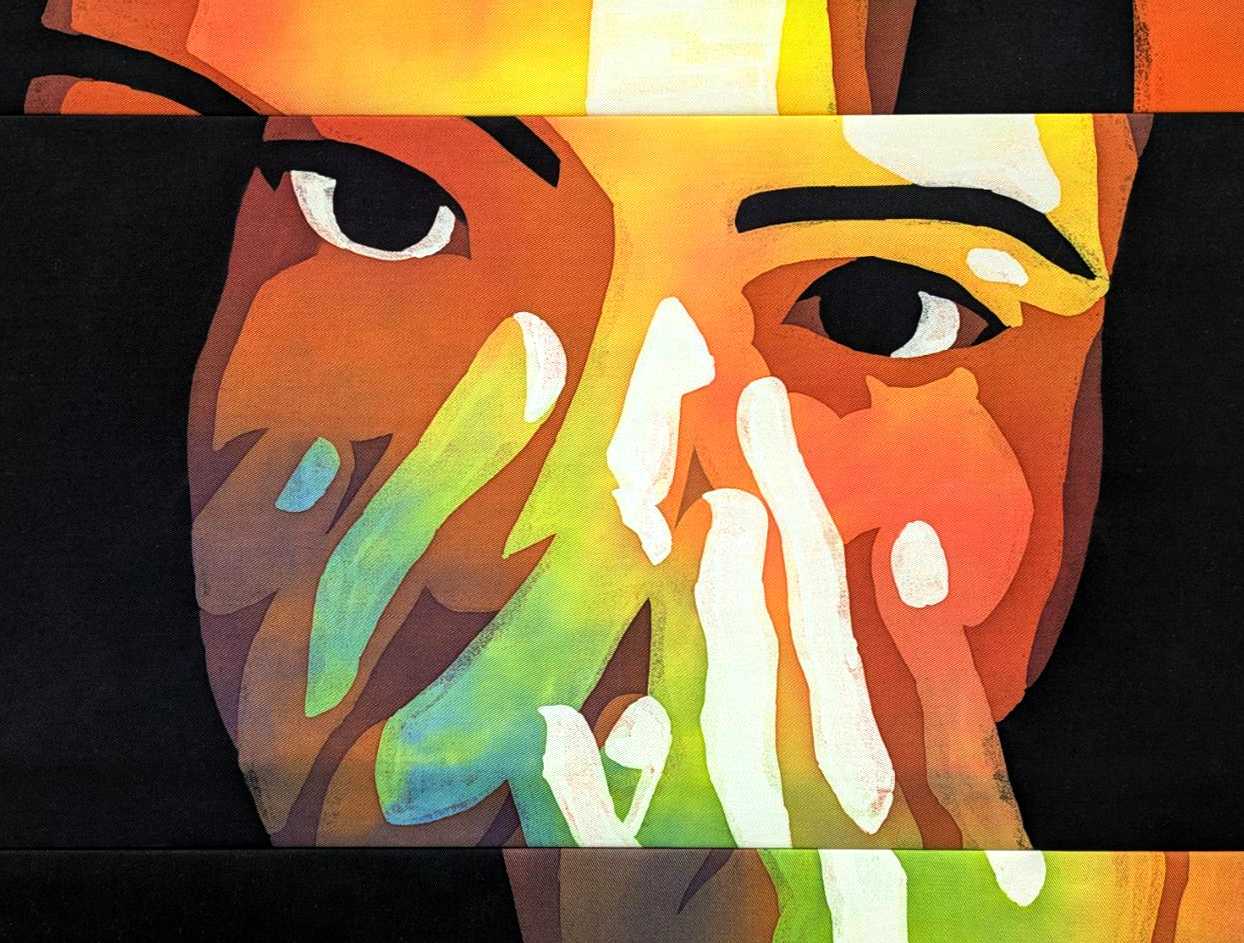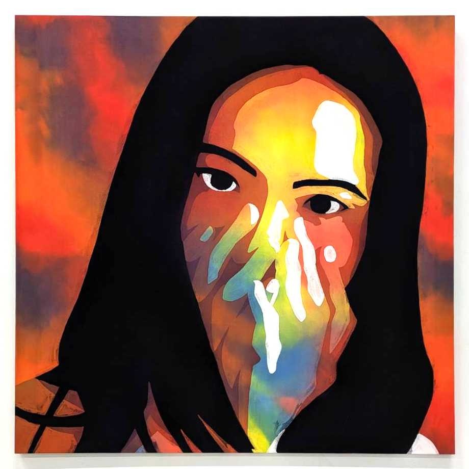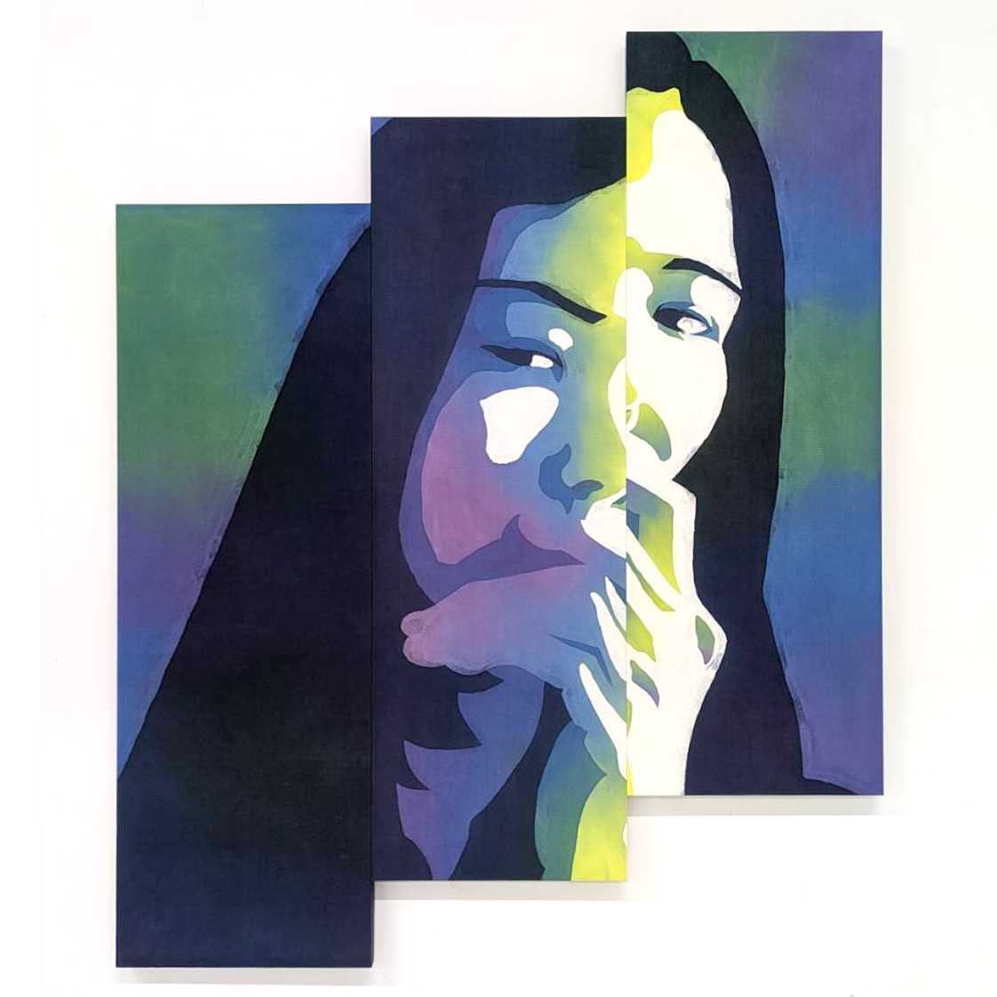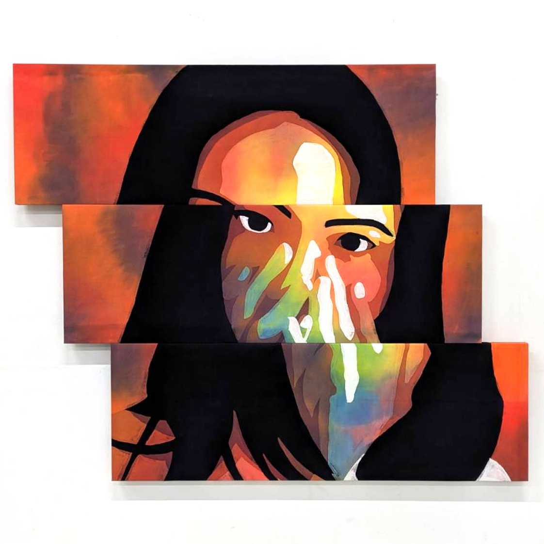 アイデンティティのもつ複雑さを異なる形態(ゼロ、イチ)に込め、「離れゆく」では冷静と高慢を青色で、「張り詰める」では緊張と衝動を赤色で、作者自身のアイデンティティを自画像で表現した。