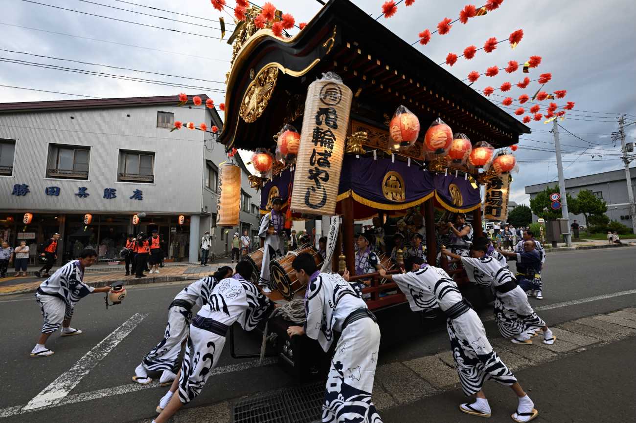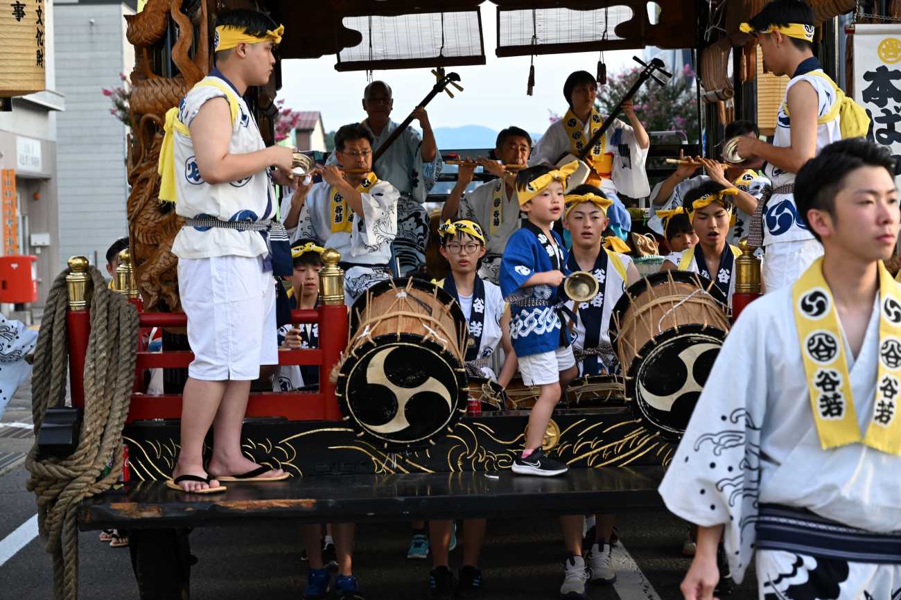 総重量10tを超える屋台は、方向変換も大変である、障害物を避けて一気に回すのも祭りの醍醐味である