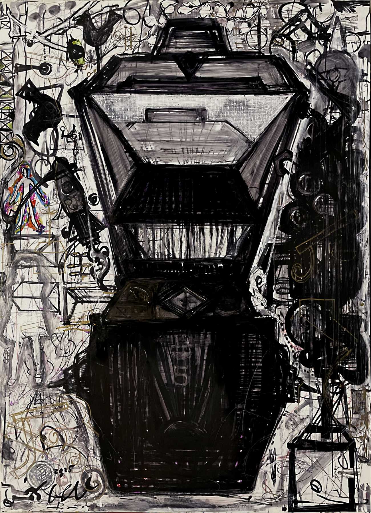 雪舟の涙の鼠の絵やジョゼフ・フェルディナン・シュバルの宮殿、ピーター・ビアードのダイアリーといったもの・ことを、「やむにやまれぬ何か」としか言いようのないその衝動から生まれる非合理的な何らかの行為を「ムシュムシュ」(自己調整の試み)という造語で特定し、その産物(もの・こと)とした。そして制作においては、このムシュムシュを自身の「いろをぬること→絵を描くこと」に集約させるという「スコア」(予め定めた制作手順)に基づき、日常生活の中に無理なく組み込んだ環境下で自身のスループットとして「絵画」展開した。
