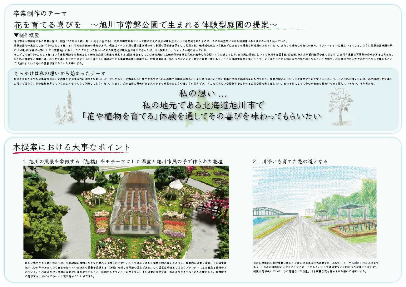 旭川で花を通してこの故郷に貢献したい。その思いが、今回の卒業制作へとつながっている。