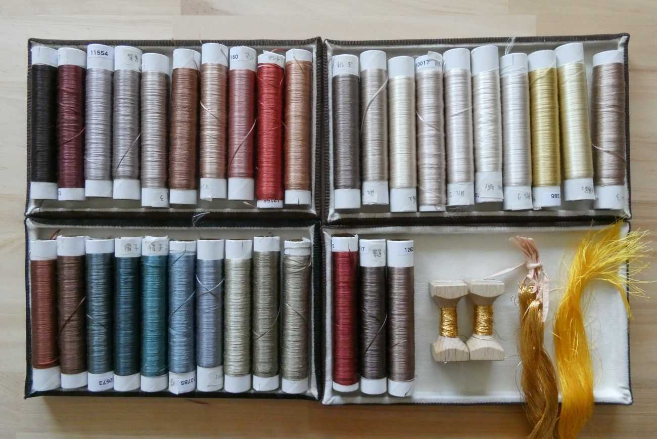 オール・ヌエ〈うつし〉使用素材、釜糸・3掛本金糸・絹綴じ糸、©Takeshi Sugiura