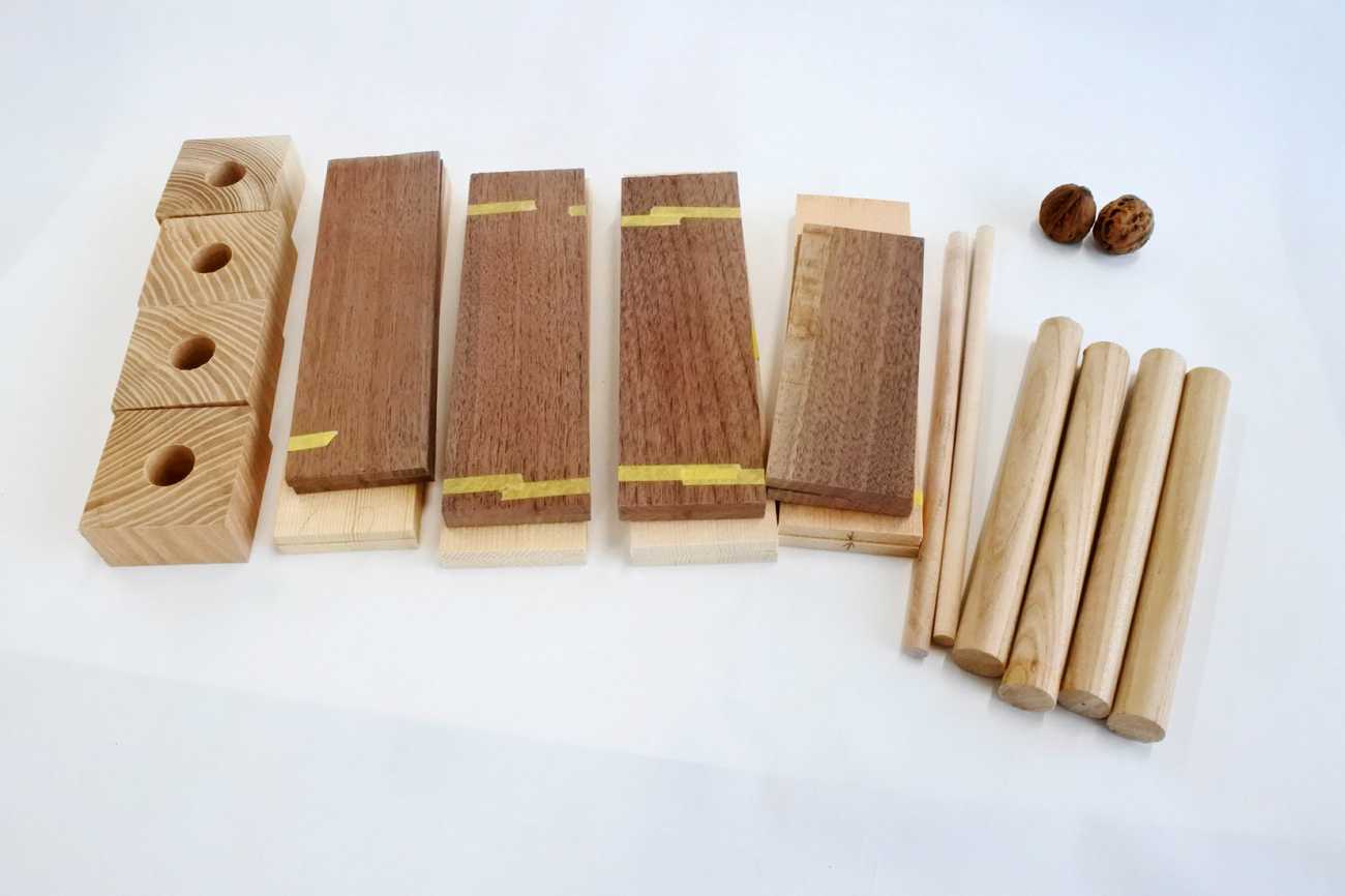 しかし本来、楽器作りとは、人類が音を獲得し、音楽へと昇華させてきた過程を追体験する営みであるはずである。素材の選択、形状の工夫、振動の仕組みへの理解を通して、音の質や高さが決まる。その体験は、音楽を「与えられるもの」ではなく「自ら構築するもの」として捉える契機となる。この楽器づくりの原点に立ち返り、木という素材の特性を生かしながら、音楽的に成立する楽器作りが実現できるのではないかと考えた。
