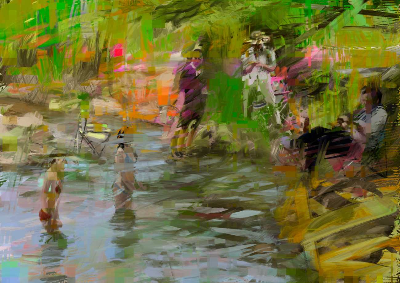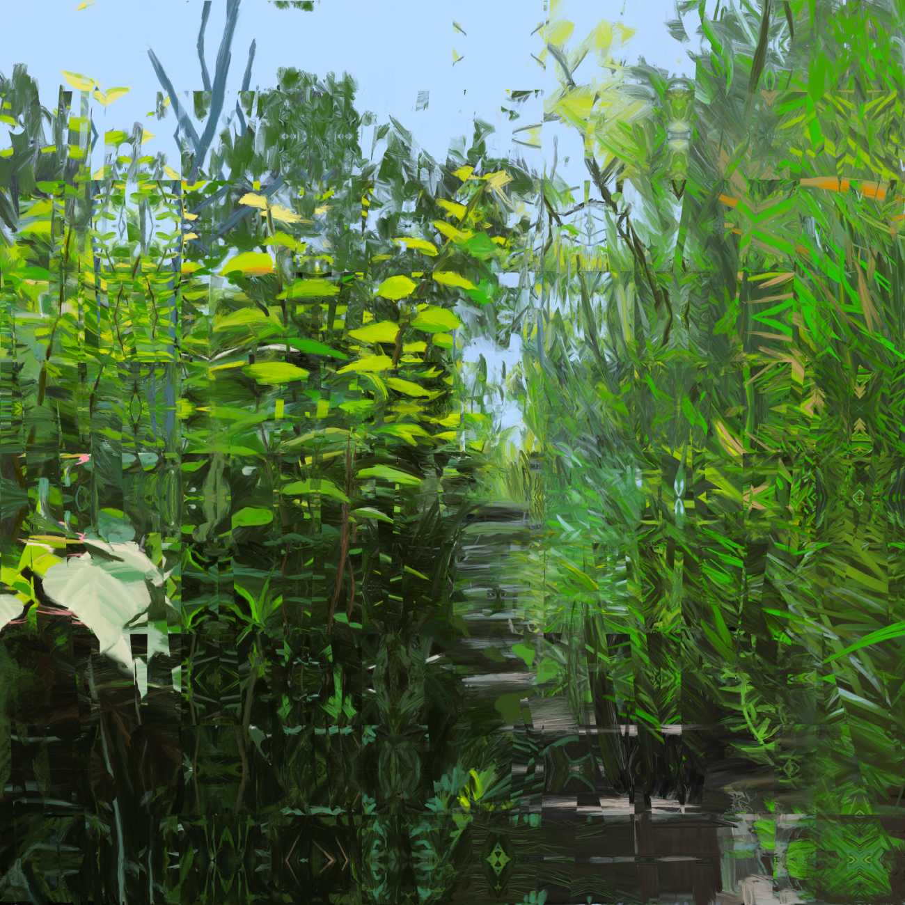 デジタル絵画というスタイラスペンを用いたアナログ的な制作行為によって描いたイメージに、アルゴリズミックな処理を混合させるという実験的試みによる作品。