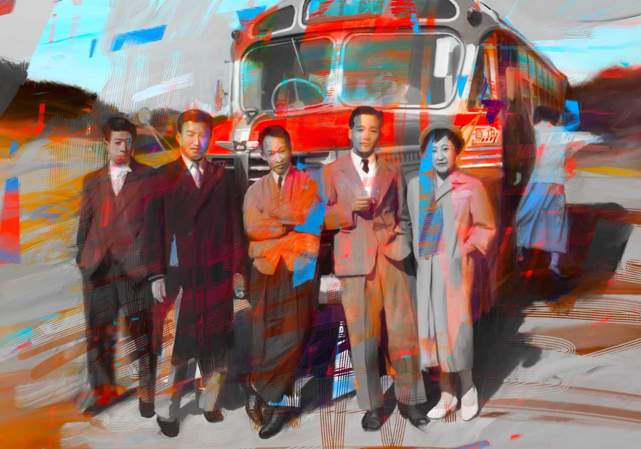 デジタル的手段によって断片化された画像と、古典的な写実的描画を、画面の中で緊張感を保ちながら多層的に共存させている。モチーフがリズミカルに分解され、繰り返しながら変容する様は、バロック音楽やミニマルミュージックにおける分散和音の運動性を想起させる。