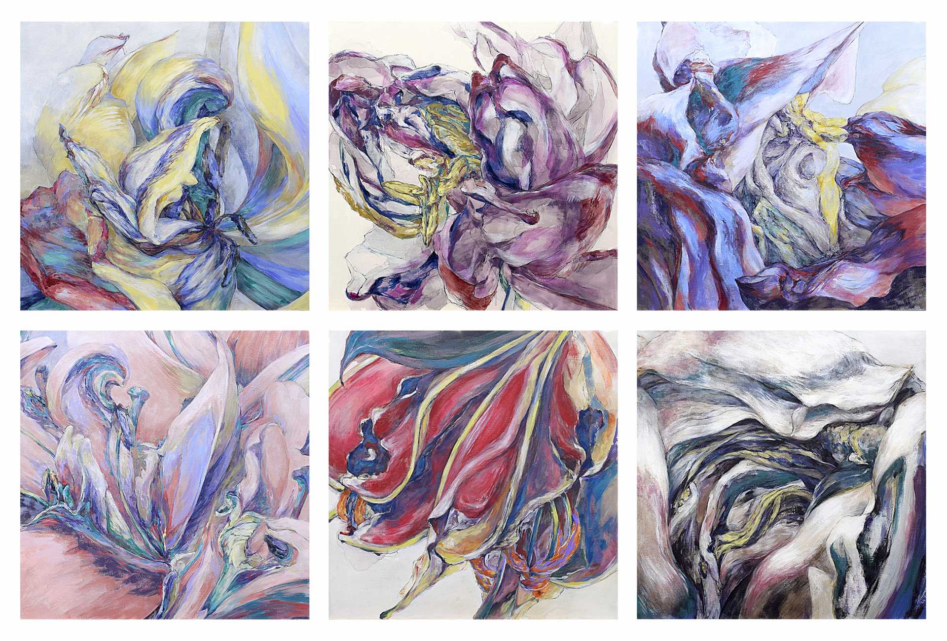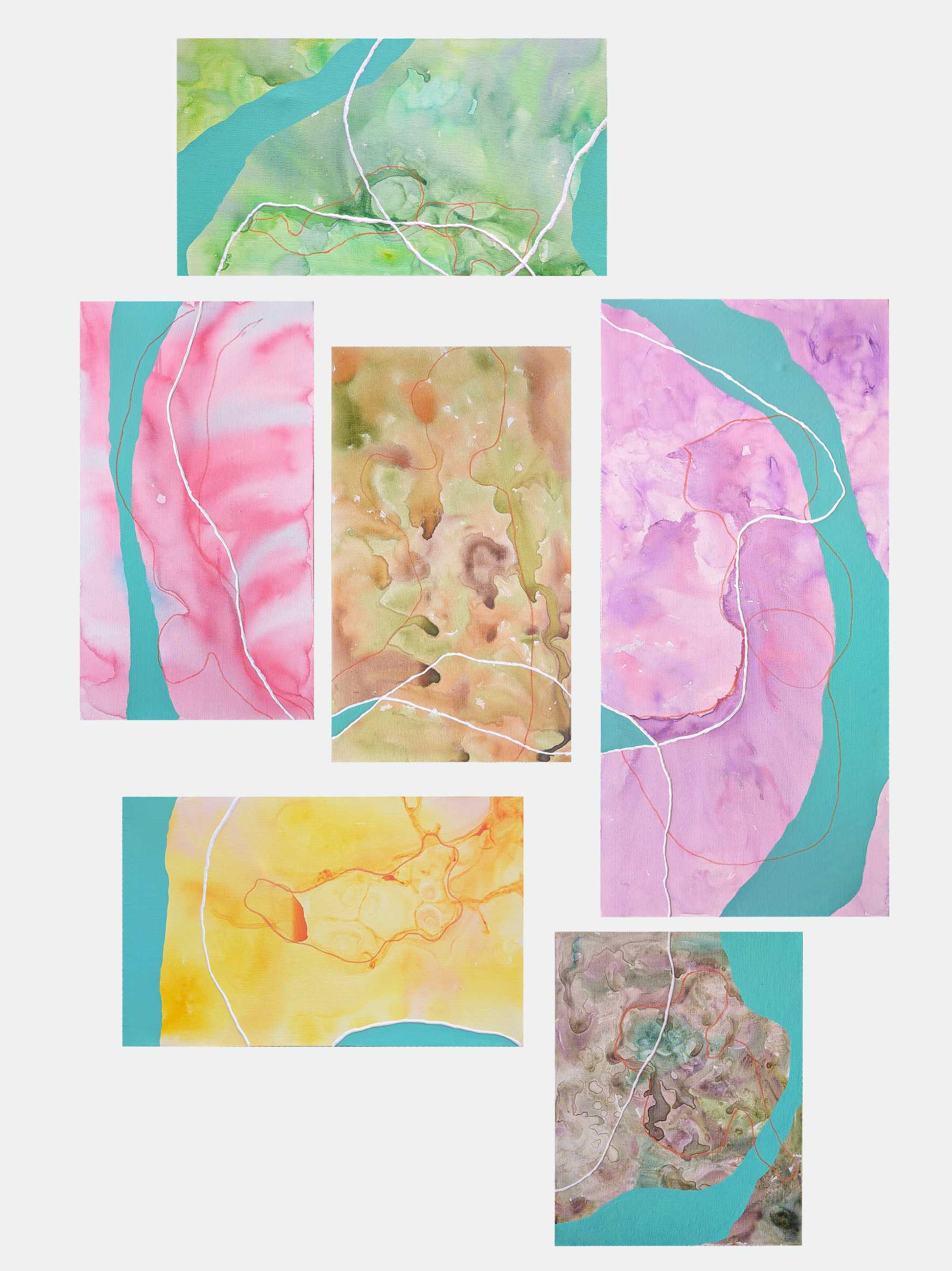 現在は京都芸術大学大学院通信教育課程洋画コースに在籍し、色と線を中心とした抽象表現を研究テーマとしています。ポアリングなど筆をあまり用いない技法や様々な画材・表現を試みる中でアクリル板と出会い、修士研究では「間・空間・余白」を主題とした造形的アプローチによる絵画制作に取り組んでいます。透明素材の重なりや曲げによって生まれる奥行きや光の変化を通し、物理性と絵画性が交差する空間の造形を追求しています。