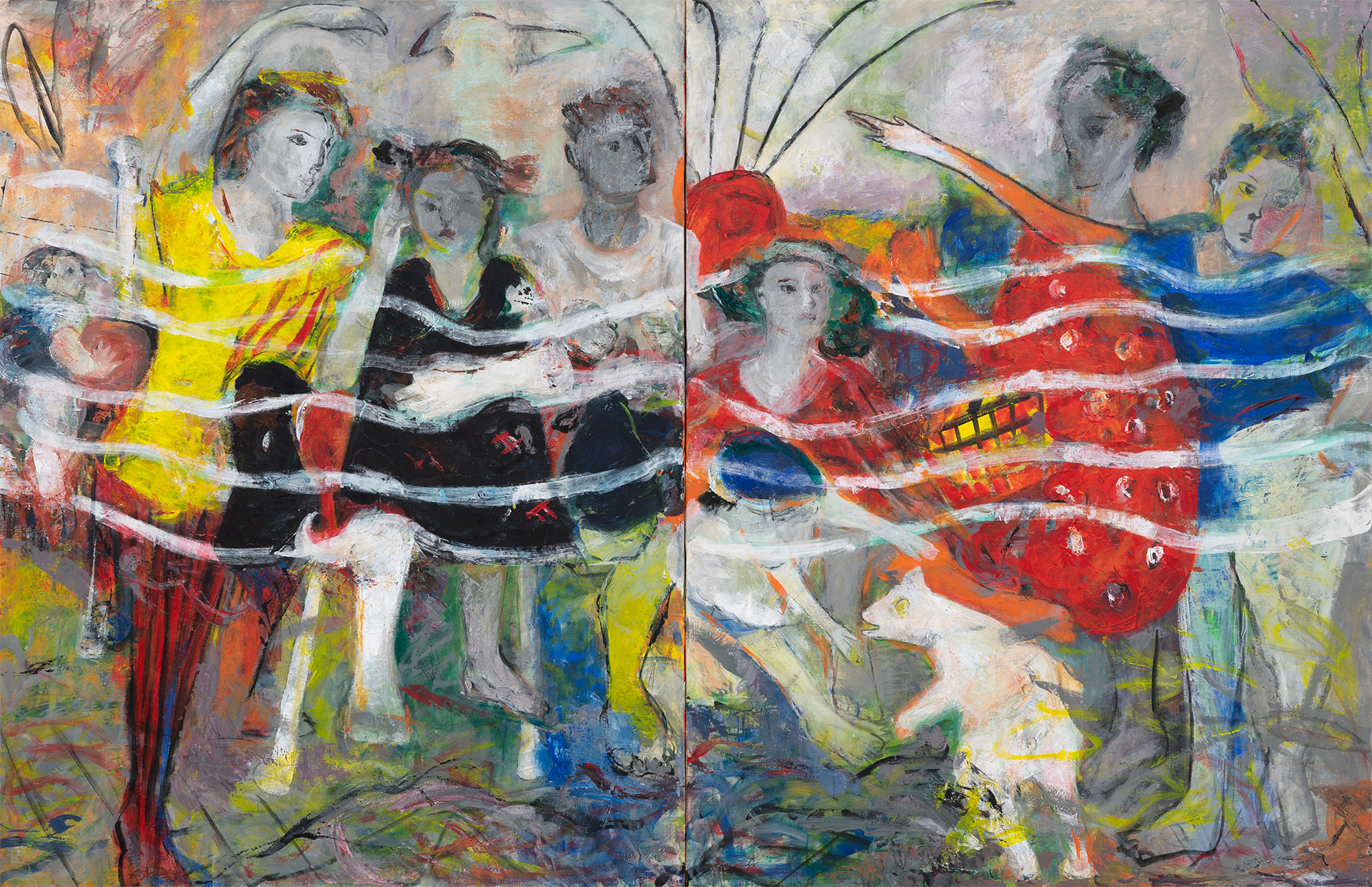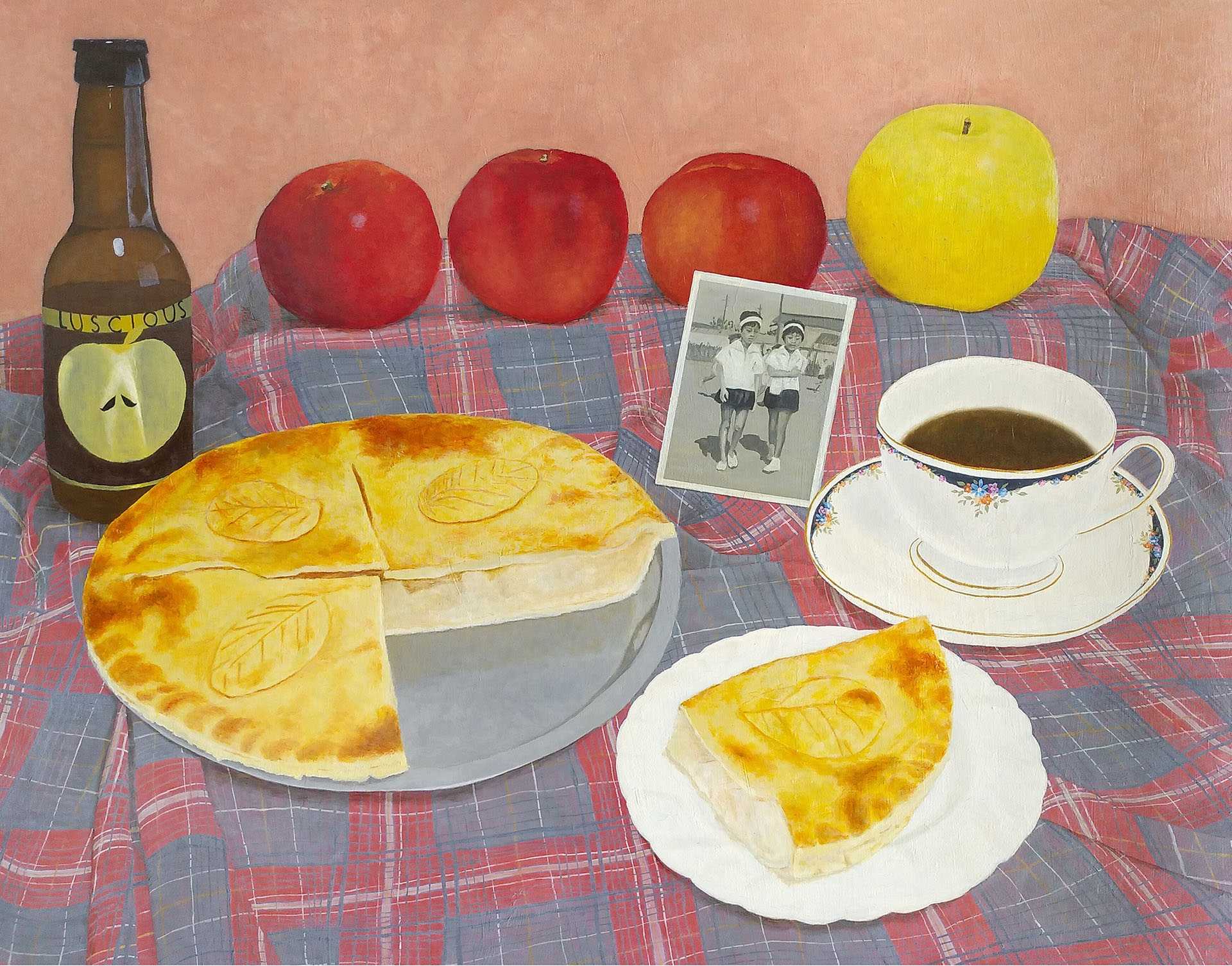 制作では、平面図上の動線や家具配置、照明、素材の質感など、空間を構成する具体的要素を読み取り、それらを画面構成へと翻訳した。実際に使用された壁紙や布地、内装マテリアルをキャンバスに取り込み、コラージュと描画を重ねることで、空間の記憶や気配を内包させている。素材の物性と筆跡のレイヤーが交差することで、絵画は単なる視覚イメージにとどまらず、触覚的な厚みを持つ存在へと展開する。