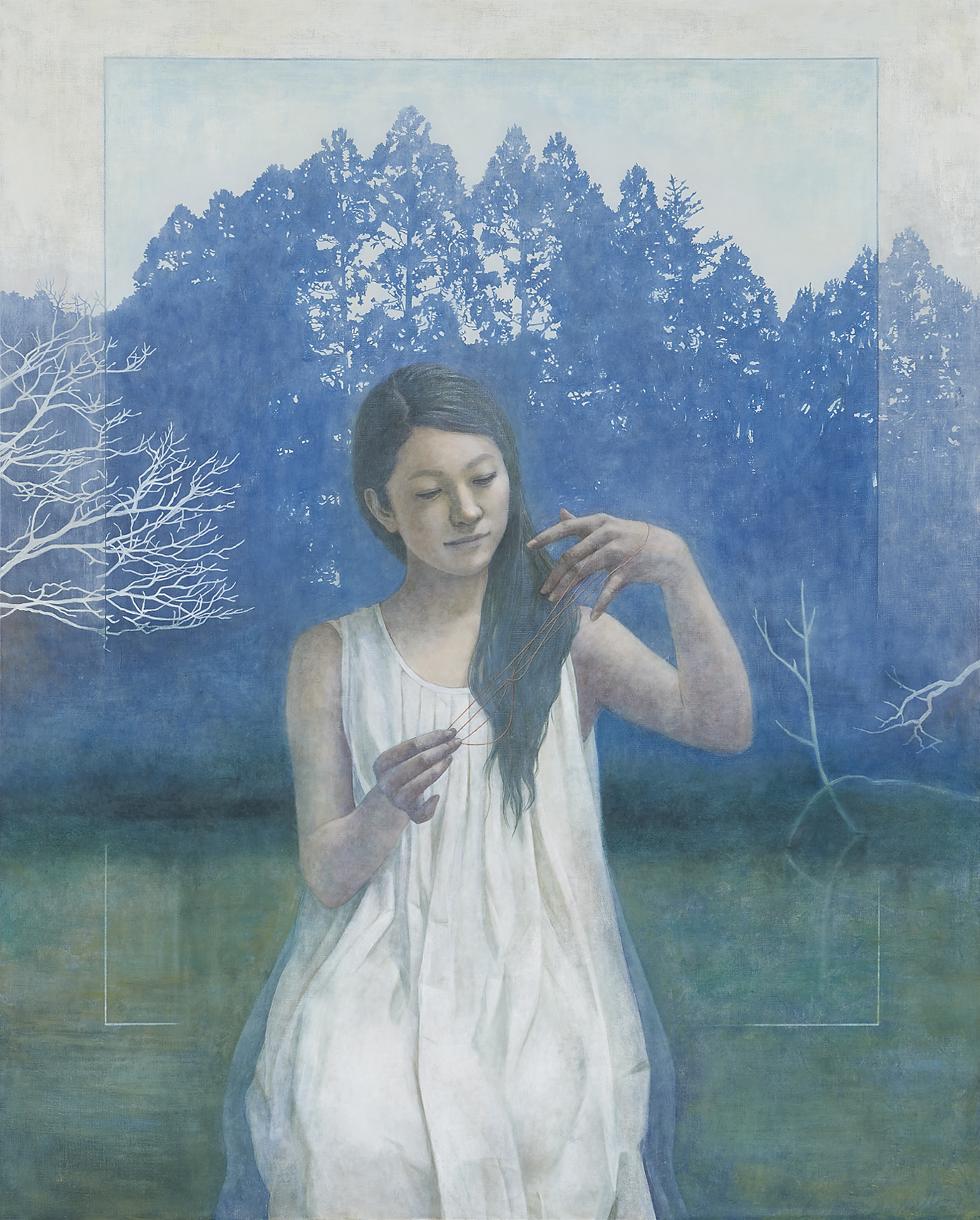 単に対象物を忠実に再現したいという主張だけで描けば、作品が平凡・平易になると考え、これを解消するために切り口を画中画に求めて制作に踏み切った。しかし、制作の過程でいくつかの仮説を余儀なくされ、本来の求めているリアリティー性が損なわれる部分が出てきた。これは構想の段階での設定の曖昧さによるもので反省している。