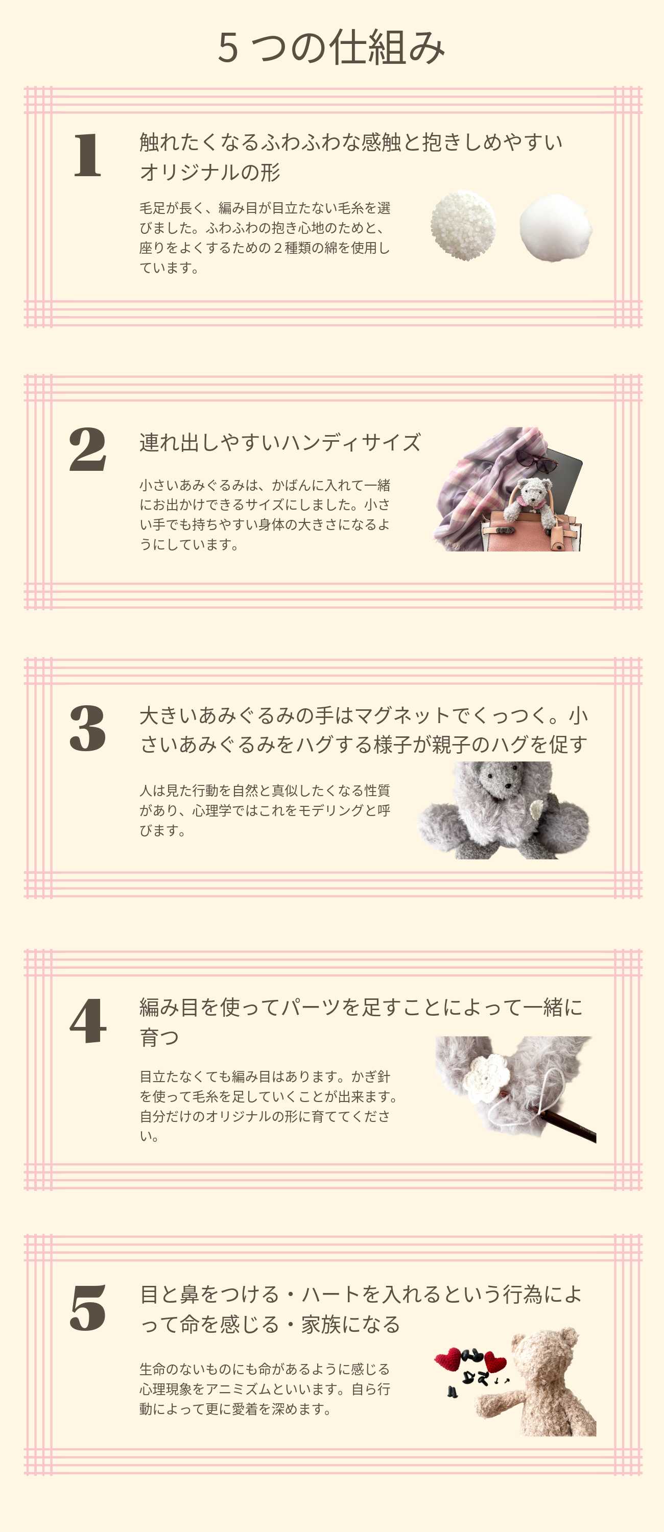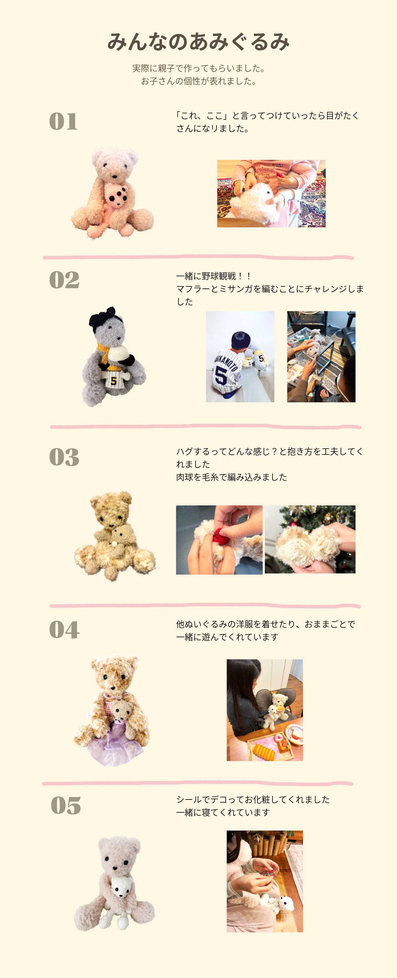 限られた親子の時間を大切に過ごしてほしいという想いからこのあみぐるみは生まれました。