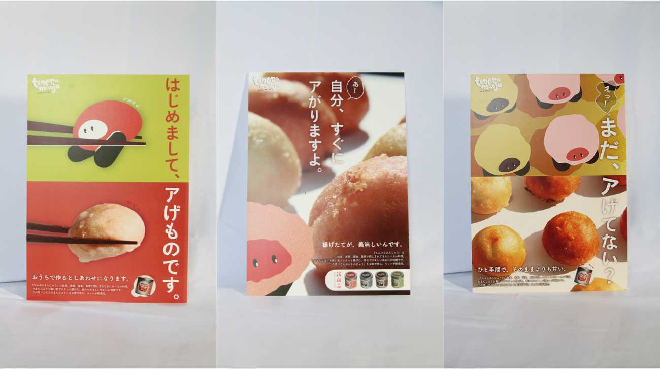 そこで「まず出会いをつくること」を重要視し、天ぷらまんじゅうのキャラクター化と商品化を行いました。