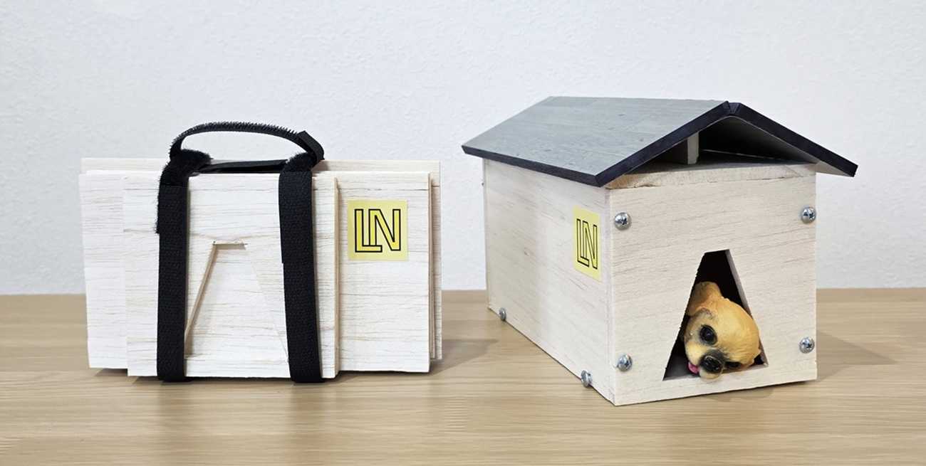 愛犬が安心して休める居場所として設計した、組み立て式の木製室内犬小屋。 日常では家具のように暮らしに馴染み、災害時や緊急避難時には素早く組み立てて使える、 生活と非常時をつなぐ設計としました。