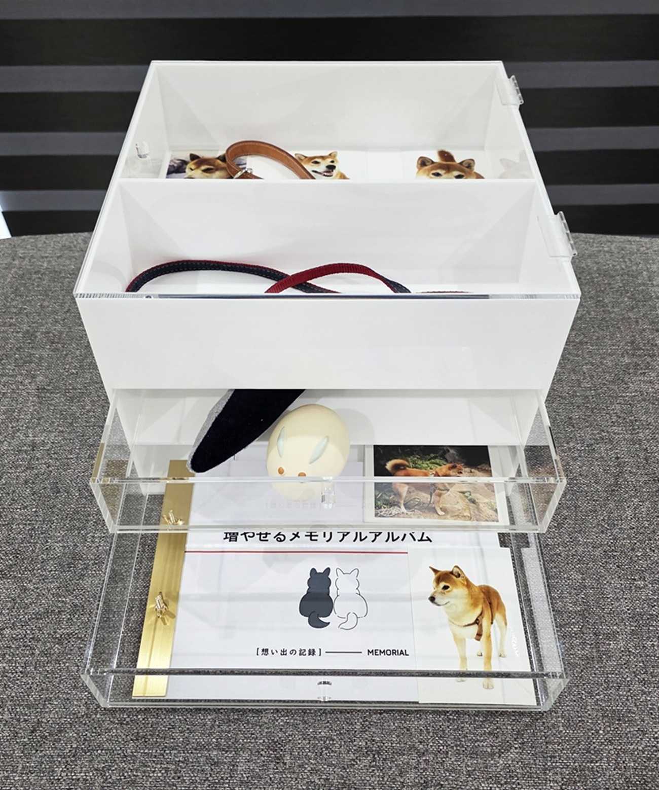 愛犬との一生を物として残すためのメモリアルボックス。 写真や首輪、思い出の品を収めることで、別れの後も暮らしの中で静かに記憶と向き合える存在を目指しました。