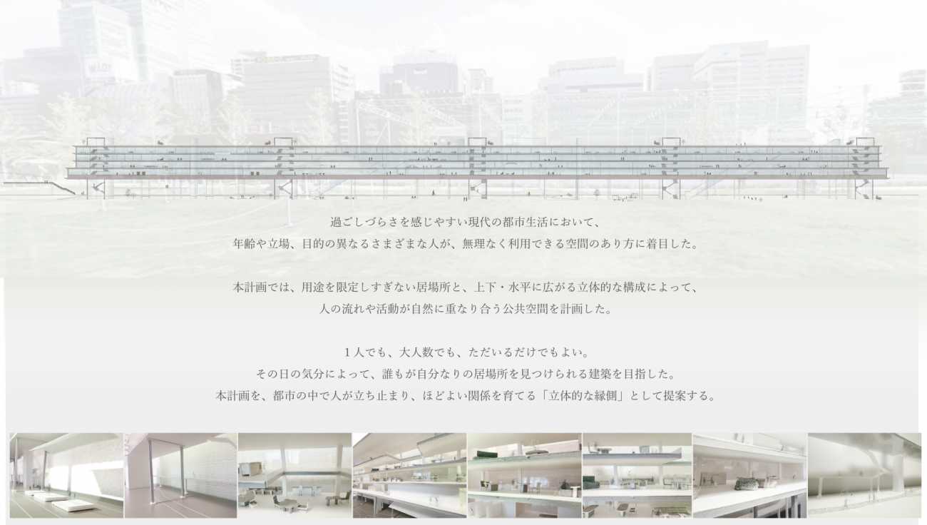 HOME 建築デザインコース 立体都市の“縁側”をつくる 立体都市の“縁側”をつくる 都市の中で、人が「通過」だけでなく「滞在」できる立体的公共空間の提案 建築デザインコース 夏目 佳苗 同窓会賞 CLOSE Tag #建築 #公共 #回遊 夏目 佳苗 建築デザインコース Share Xでシェアする LINEでシェアする このコースのその他作品 建築デザインコース 2025年度作品 作者中川莉奈 建築デザインコース 2025年度作品 作者長谷川香織 建築デザインコース 2025年度作品 作者木下恵見 建築デザインコース 2025年度作品 作者佐藤元昭 建築デザインコース 2025年度作品 作者佐々木純子 建築デザインコース 2025年度作品 作者坂口祐香 建築デザインコース 2025年度作品 作者黒澤俊和 建築デザインコース 2025年度作品 作者中村 桃子 建築デザインコース 2025年度作品 作者金本 基春 建築デザインコース 2025年度作品 作者中澤愛