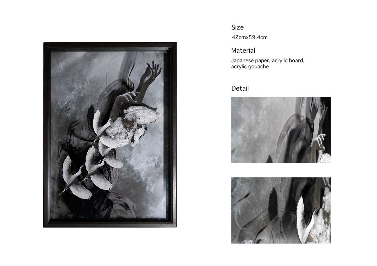 HOME (大学院)写真・映像領域 畏敬 畏敬 (大学院)写真・映像領域 積 有里 CLOSE 人智を超えた存在や力の前に立ったとき、 人は自らの小ささを思い知る。 日本人にとって神とは、まさにそのような存在である。 それは、絶対的な支配者ではなく、身近なものや自然の中に静かに宿る存在として捉えられ、敬意と共に畏れをもって向き合う対象である。 本作では、この「畏敬」という感情の視覚化をフォトモンタージュで試みた。 試行錯誤の中、平面と立体のあわいに位置する「浮面(ふめん)」と名付けた空間構造を編み出し、神に対する畏敬の念を気配として表現した。 積 有里 (大学院)写真・映像領域 CONTACT Share Xでシェアする LINEでシェアする このコースのその他作品 (大学院)写真・映像領域 2025年度作品 作者長谷川 美祈 (大学院)写真・映像領域 2025年度作品 作者山本 理恵 (大学院)写真・映像領域 2025年度作品 作者村越 豊 (大学院)写真・映像領域 2025年度作品 作者吉田 篤司 (大学院)写真・映像領域 2025年度作品 作者高嶋 敏展 (大学院)写真・映像領域 2025年度作品 作者黎 順成 ゾーミン (大学院)写真・映像領域 2025年度作品 作者鈴木 大斗 (大学院)写真・映像領域 2025年度作品 作者山田 貴子 (大学院)写真・映像領域 2025年度作品 作者古野 達也 (大学院)写真・映像領域 2025年度作品 作者尾山 直子