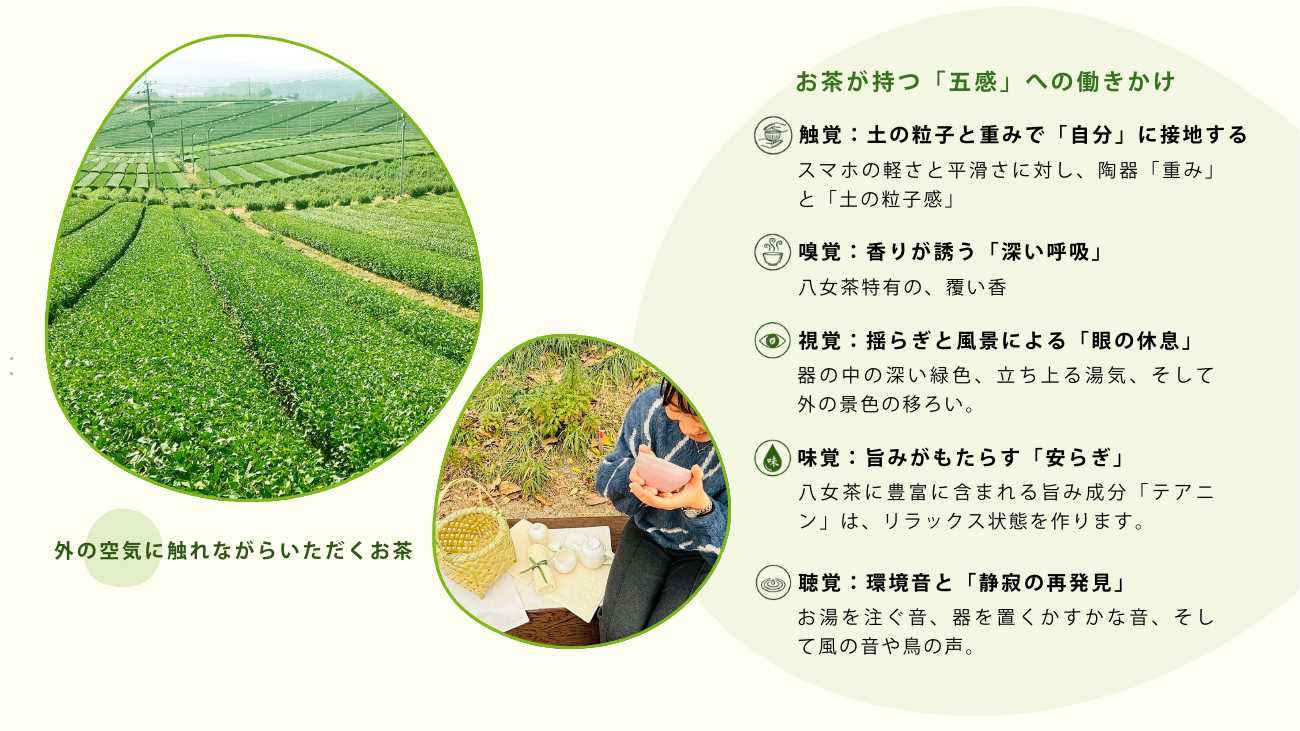 コンセプト:八女茶と整えるデジタル時代の心の余白