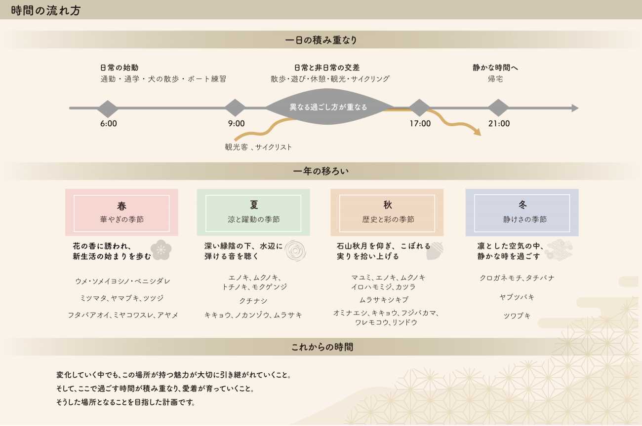 本計画では、この場所に見られる日常と非日常、昔からあるものと更新されてきたものの混在を、「重なり」として捉え直しました。