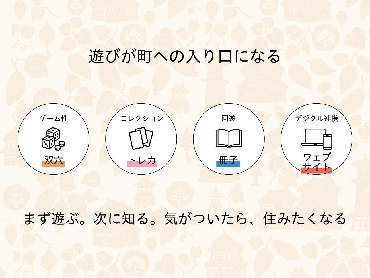 双六などのグッズを使った遊びを通して、川越を見て、集めて、発信して、さらに好きになる。