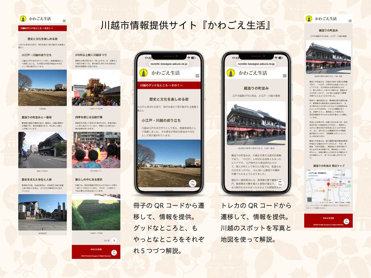 ウェブサイトは、冊子やカードで気になったところを、QRコードを使って、さらに詳しい情報を知ることができます。紙では伝えきれない耳寄りな情報を提供しています。