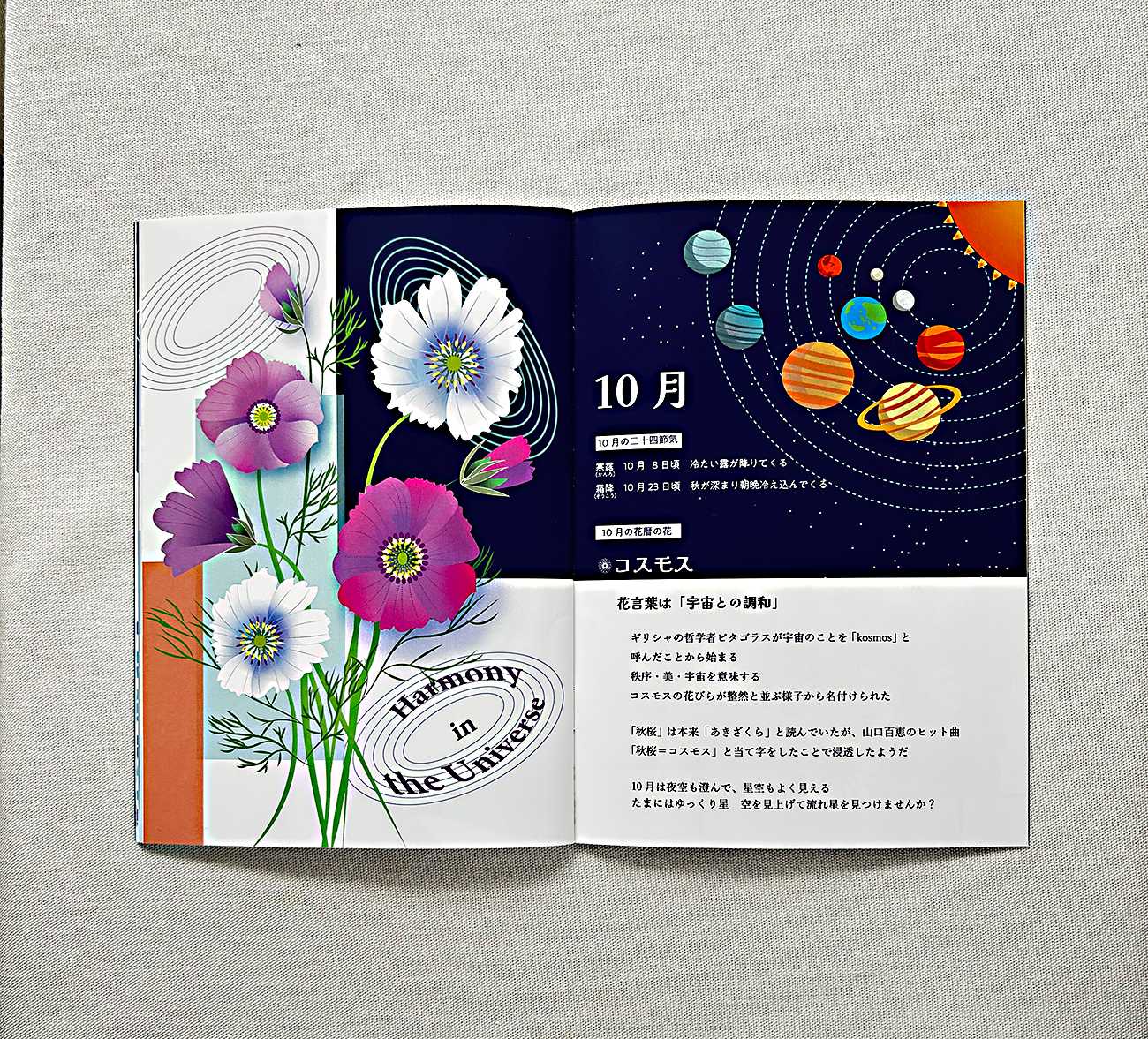 カレンダーを通して月を見上げ、花の声に耳を澄ます。 そんなひとときが、私たちの感覚を自然の中へ戻してくれるきっかけになれば嬉しいです。