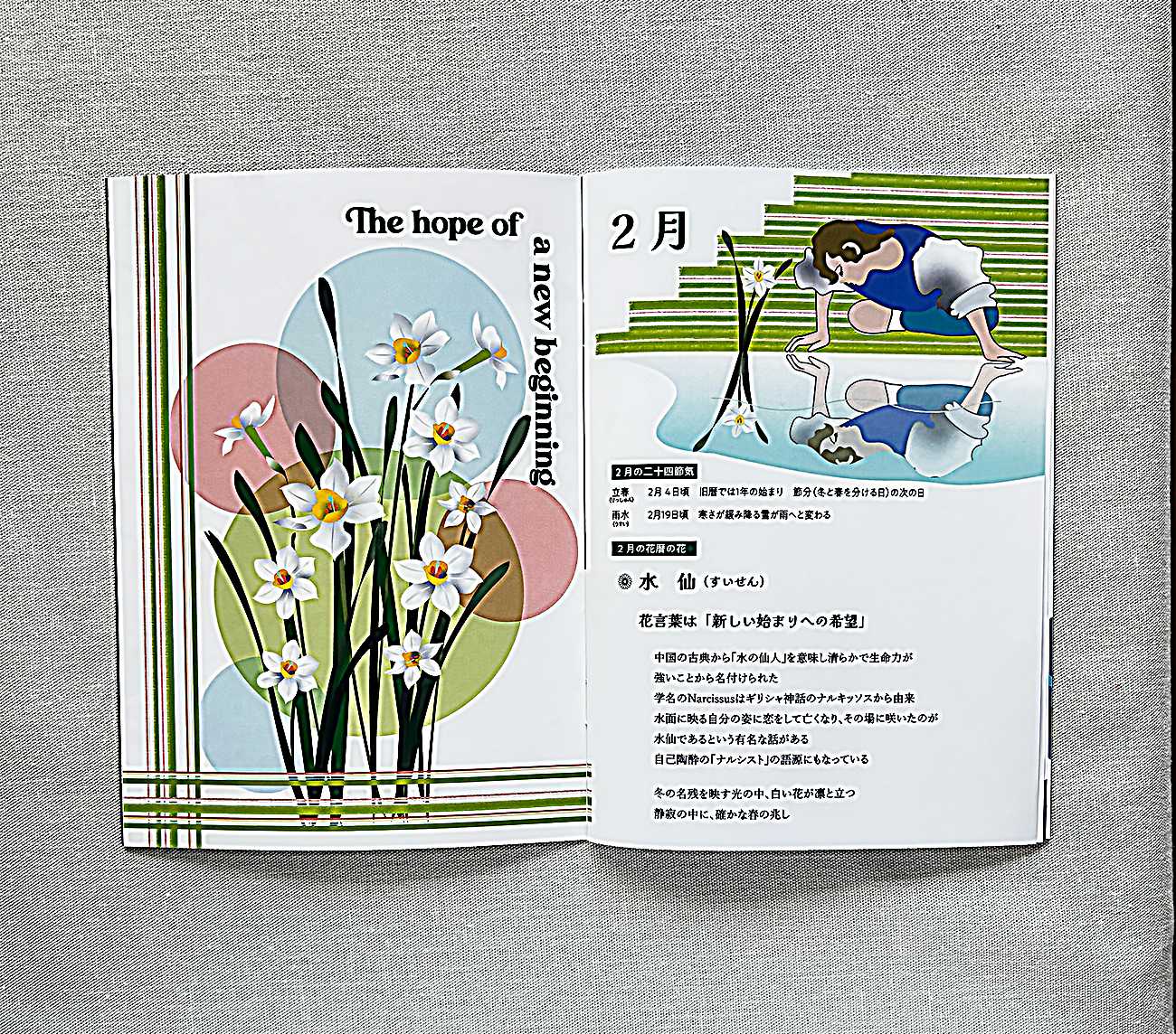 2月 水仙 ギリシャ神話のナルキッソスのシーンを掲載