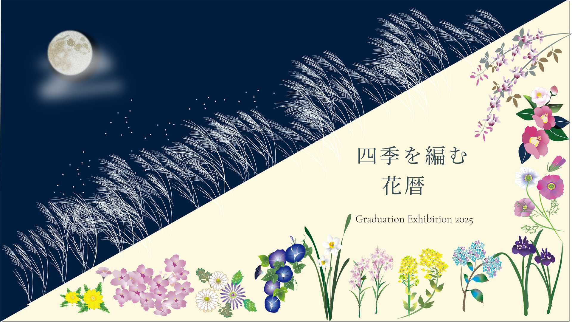 近年、温暖化の影響で日本の四季は曖昧になりつつあります。本作は月ごとの花(花暦)と月の満ち欠けを通し、暦を単なる「数字」ではなく「自然の移ろい」として感じ直す試みです。