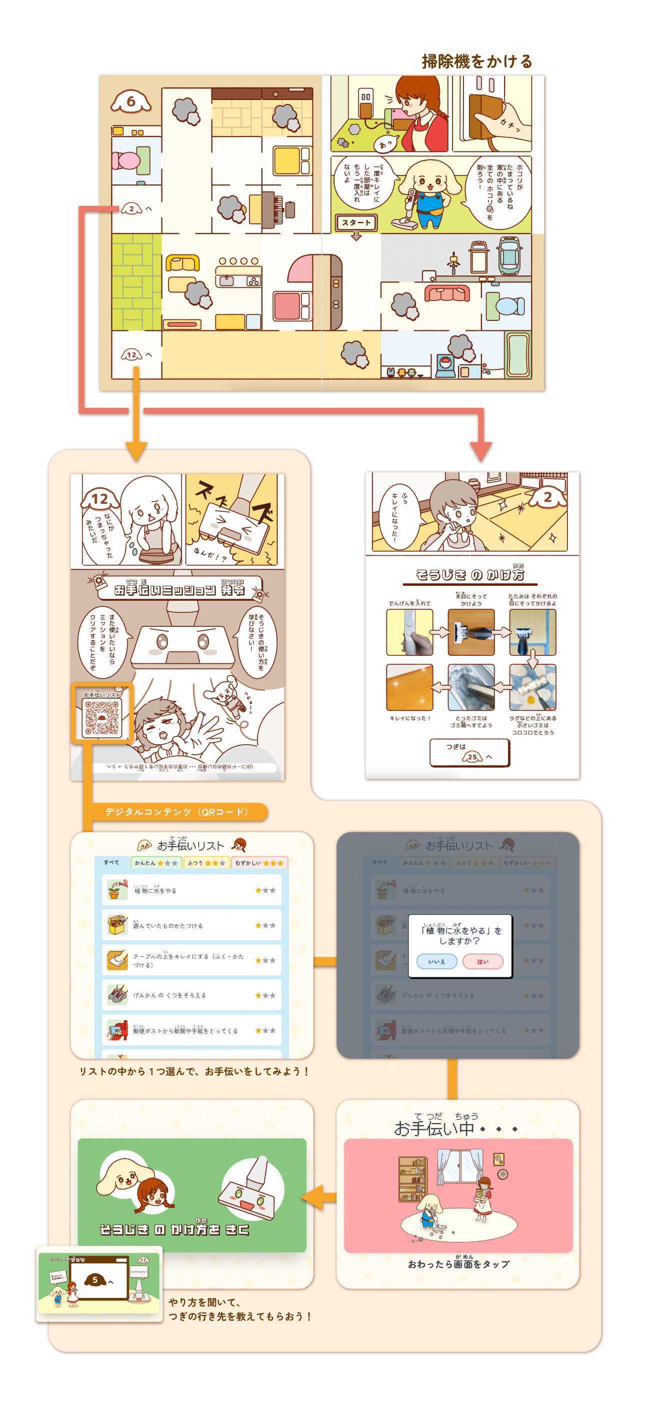 選択肢によっては現実の「お手伝いミッション」をクリアすることで物語の続きが読める仕組みにしました。