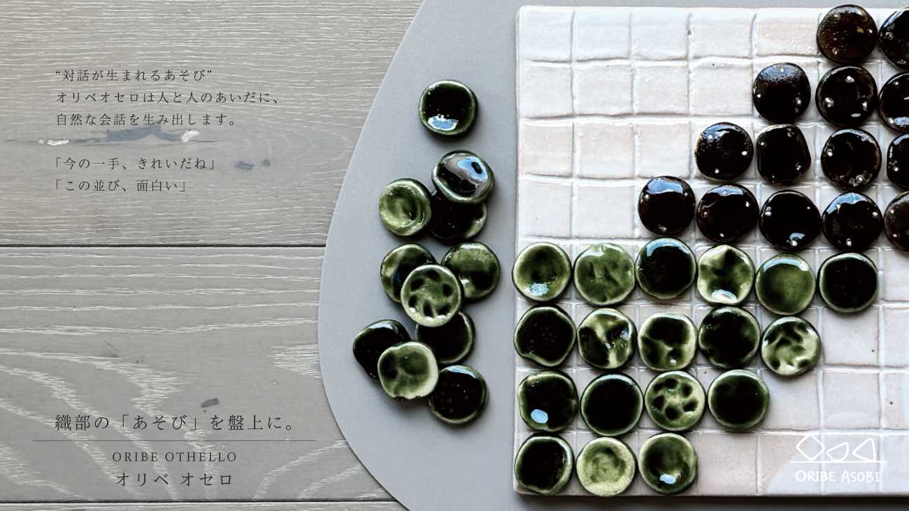 遊びながら、見ること、感じることを共有する。 それもまた、ORIBE ASOBIが考える「あそび」です。 不揃いの石を置く感触、返る音、 変化していく盤の景色に目を向けてほしい。