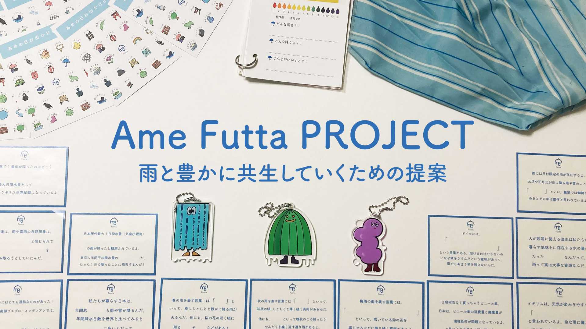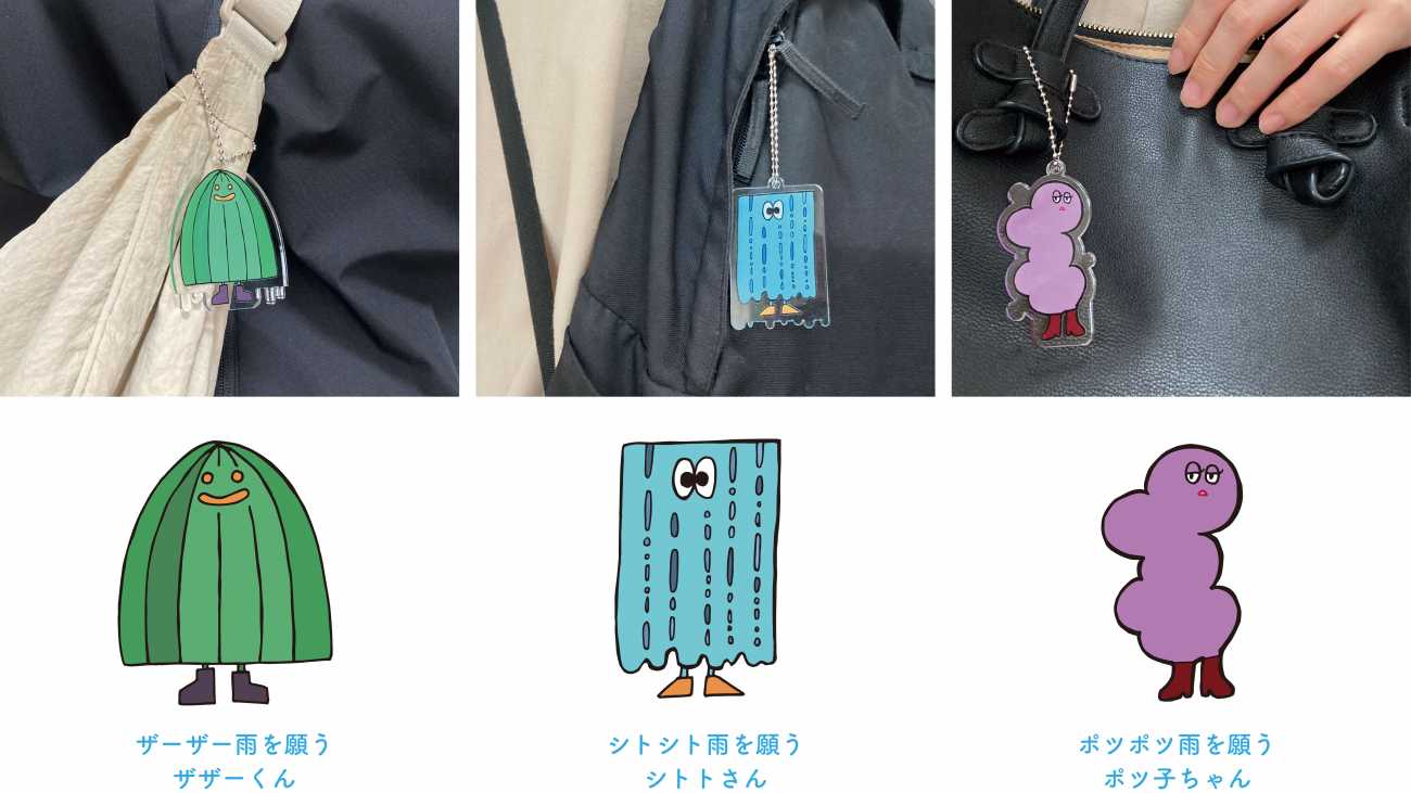 ・雨ふれふれキーホルダー 雨を願う時にバッグなどにつけるキーホルダー。 思いっきり雨に濡れたい時、雨によって静かな街の雰囲気を味わいたい時、それぞれの気持ちに合わせて使い分けることができます。