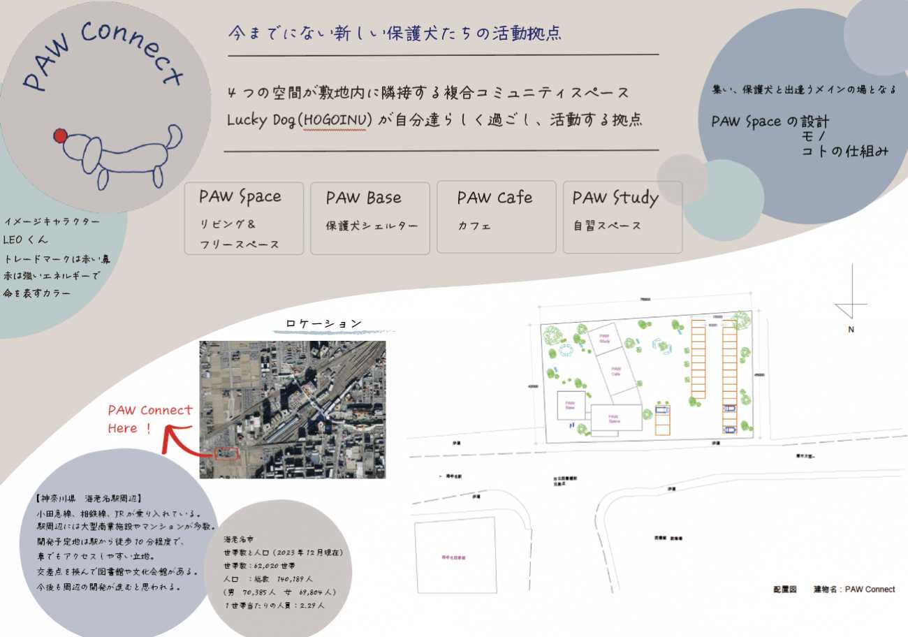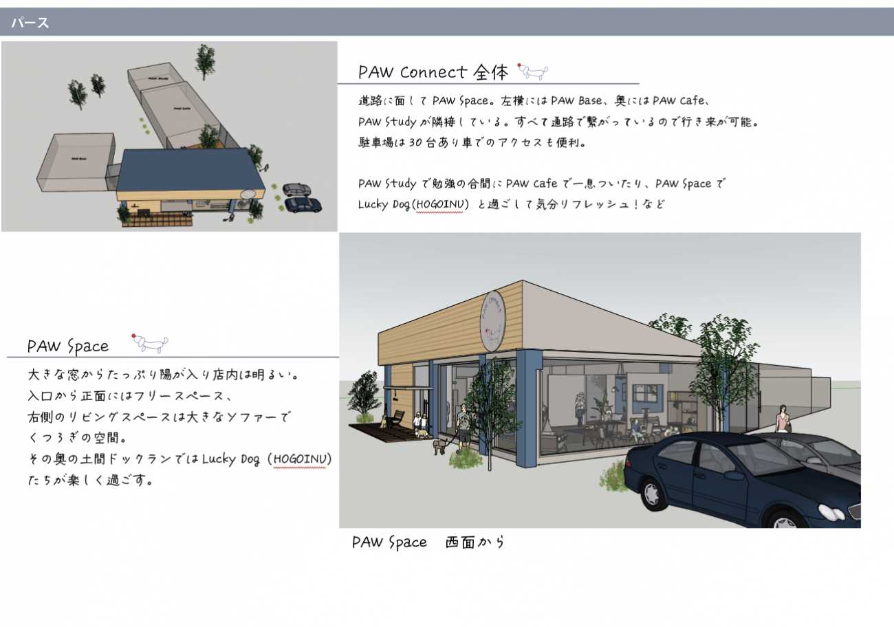 PAW Connectは日常的に保護犬に出逢える4つの空間がつながる複合 コミュニティスペース。その中のPAW Spaceの空間設計・モノ・コトの仕組みを考えました。
