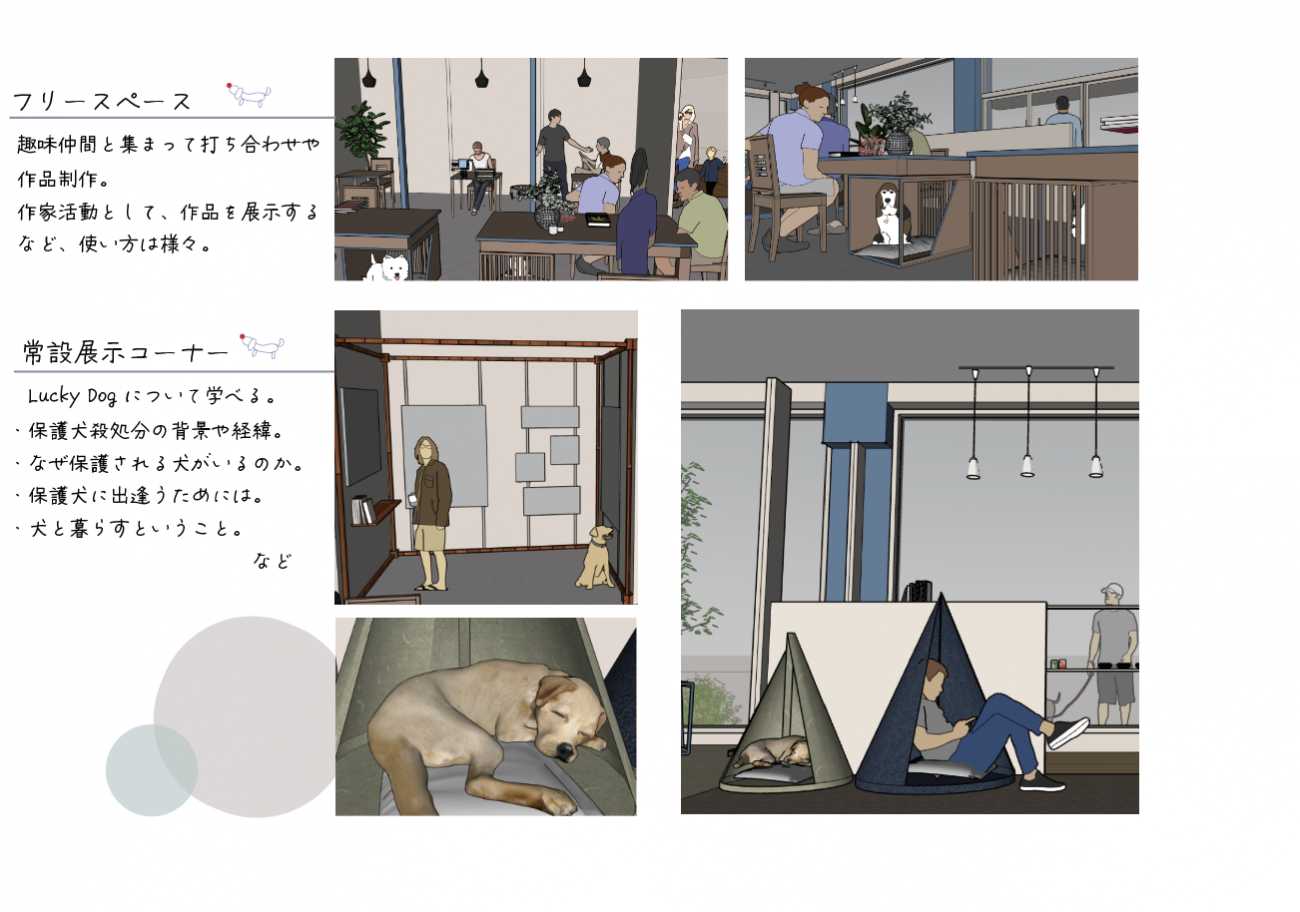 保護犬をお迎えする選択がごく自然なこととなり、保護犬と暮らすことで輪が広がり犬も人も心豊かな生活となる。そんな仕組みがつまった空間を計画しました。