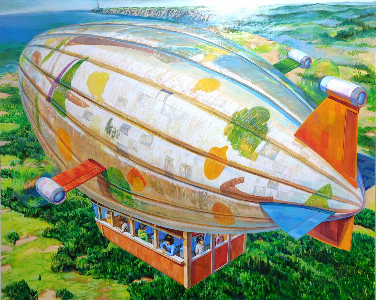 空を漂い、風に流されながらも自分で方向の舵をとる飛行船に現代の人々の様子を重ねた。