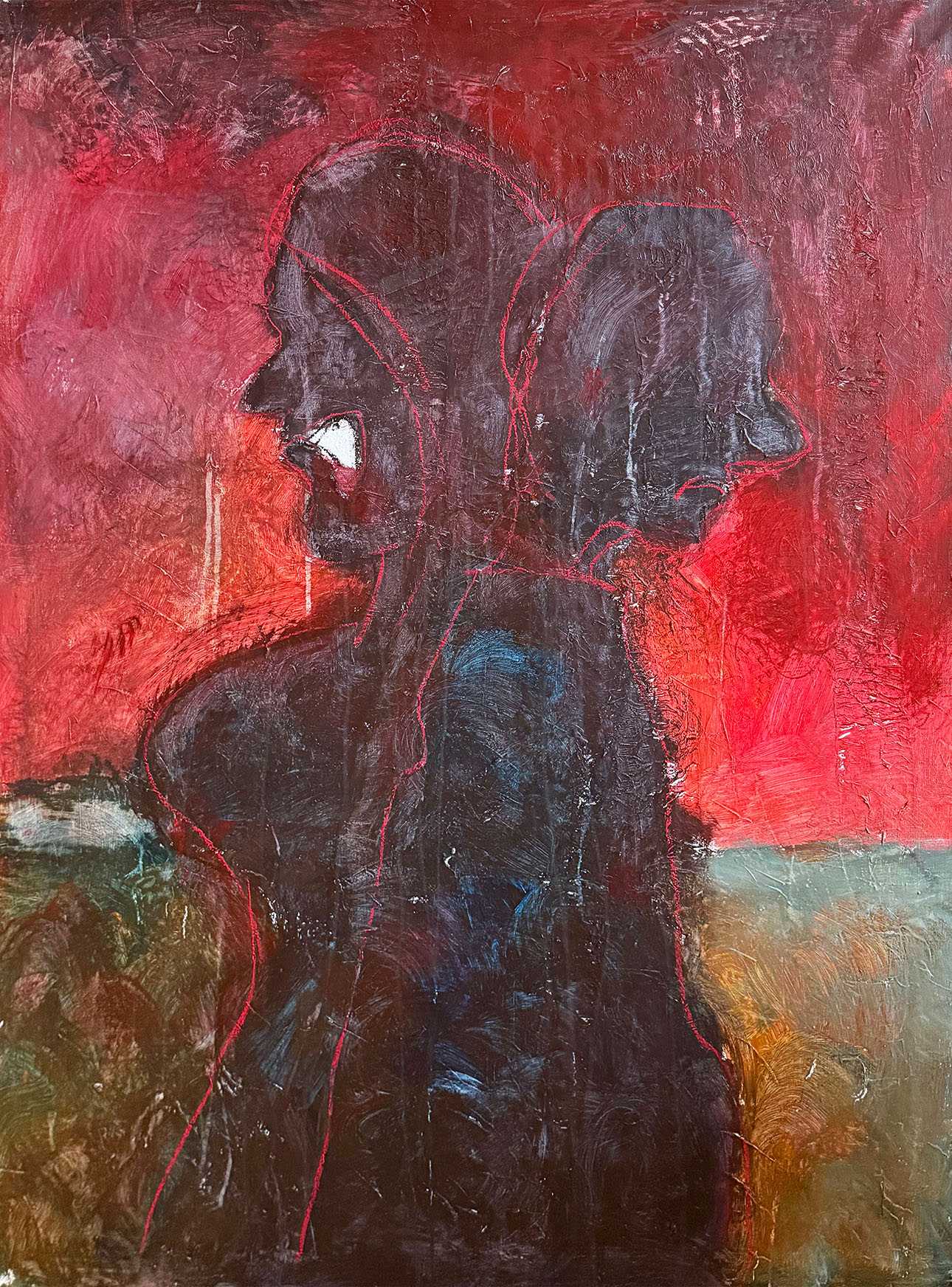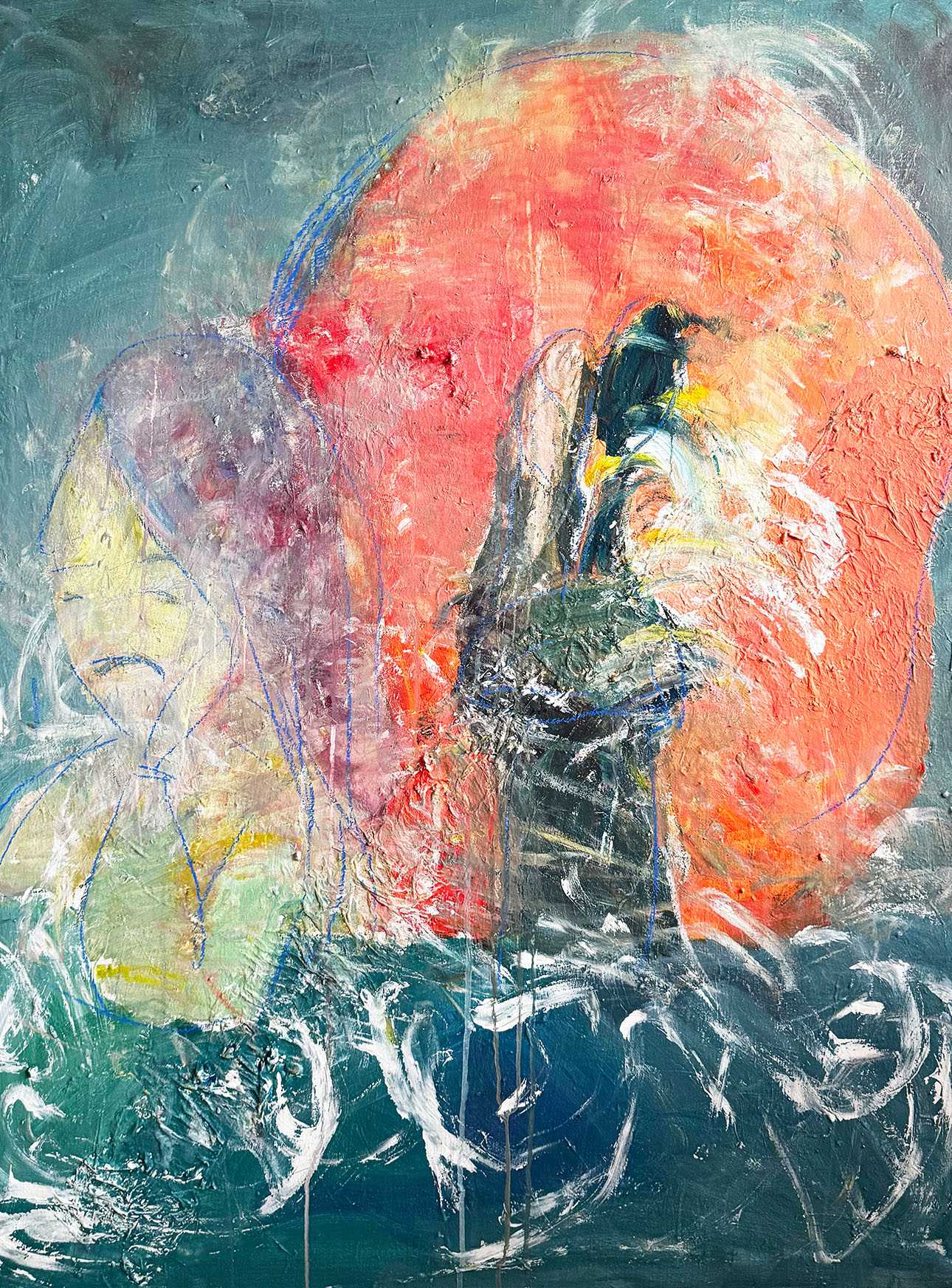 アクリル、オイルパステル、木炭