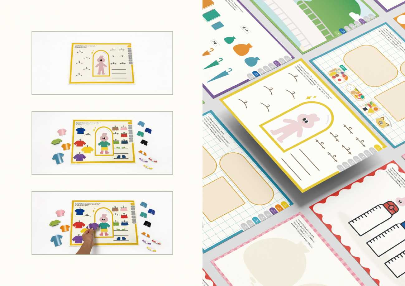 教材の中心にはマグネット素材を用いたパーツ操作を取り入れ、幼児が自ら手を動かし、試しながら理解を深められる点を重視しました。また、親がそばで声をかけながら関わることを前提とし、「教える教材」ではなく「一緒にあそぶための媒体」として構成しています。