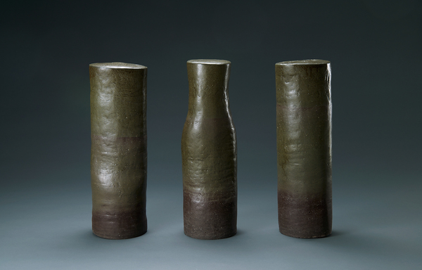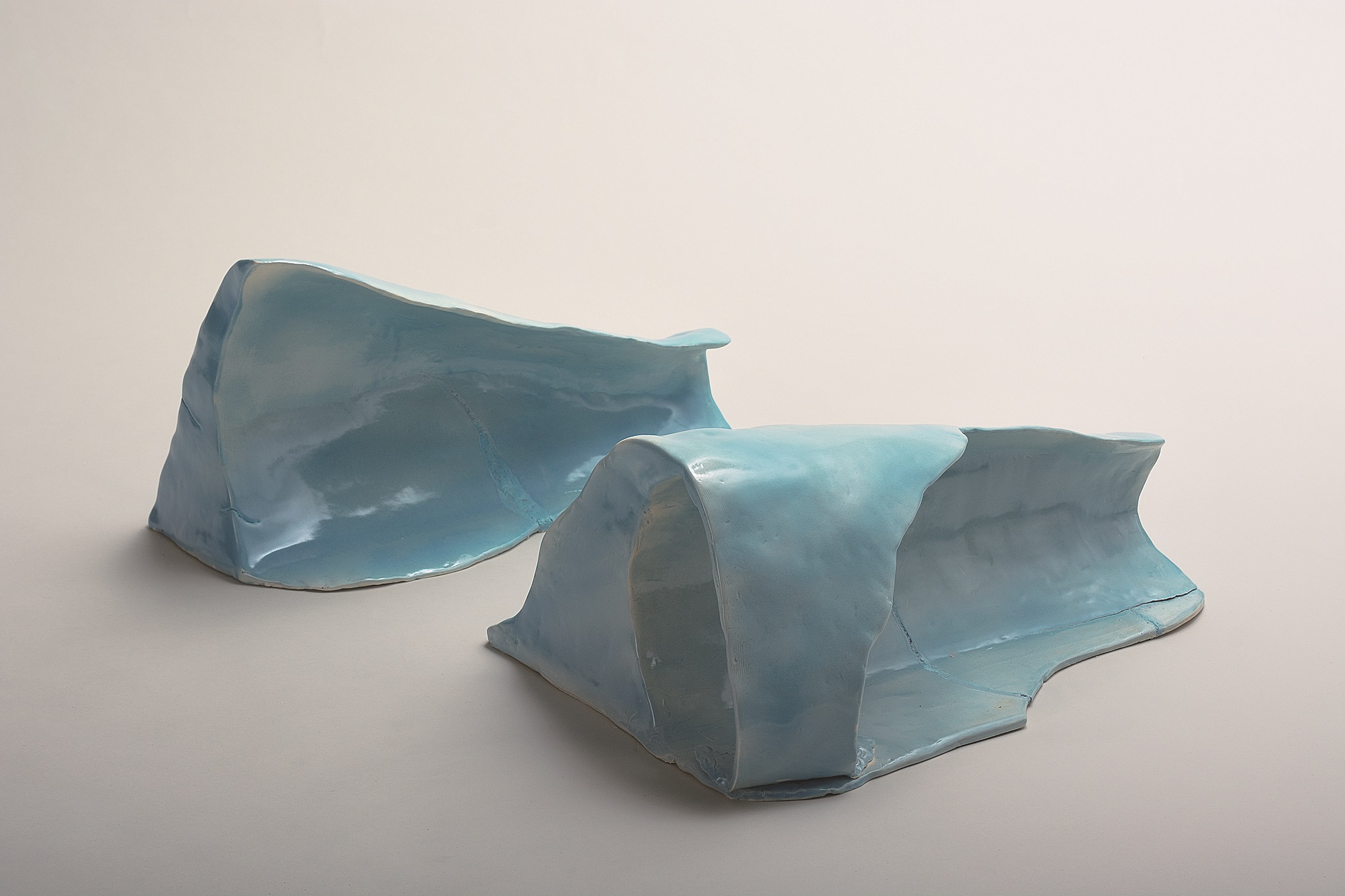 テラコッタ土、半磁土・手捻り、型づくり・透明釉・野焼、酸化焼成