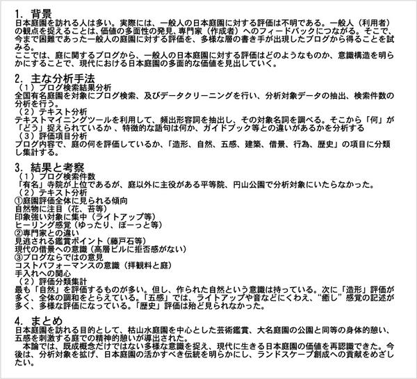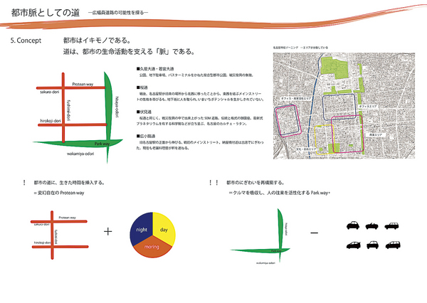 私たちは「景観」に包まれている。つまり私たちを創り育んでいる外界である。その「景観」を構成している多面的要素を抽出し、私たちとの関連性を確認することで「景観」の重要性・捉え方を認知し、特に五感・感覚に訴える景観創造が人々に新たにあらゆる創造への可能性を広げると共に、心地よさ、横浜の場所性に効果的であることを提案する。