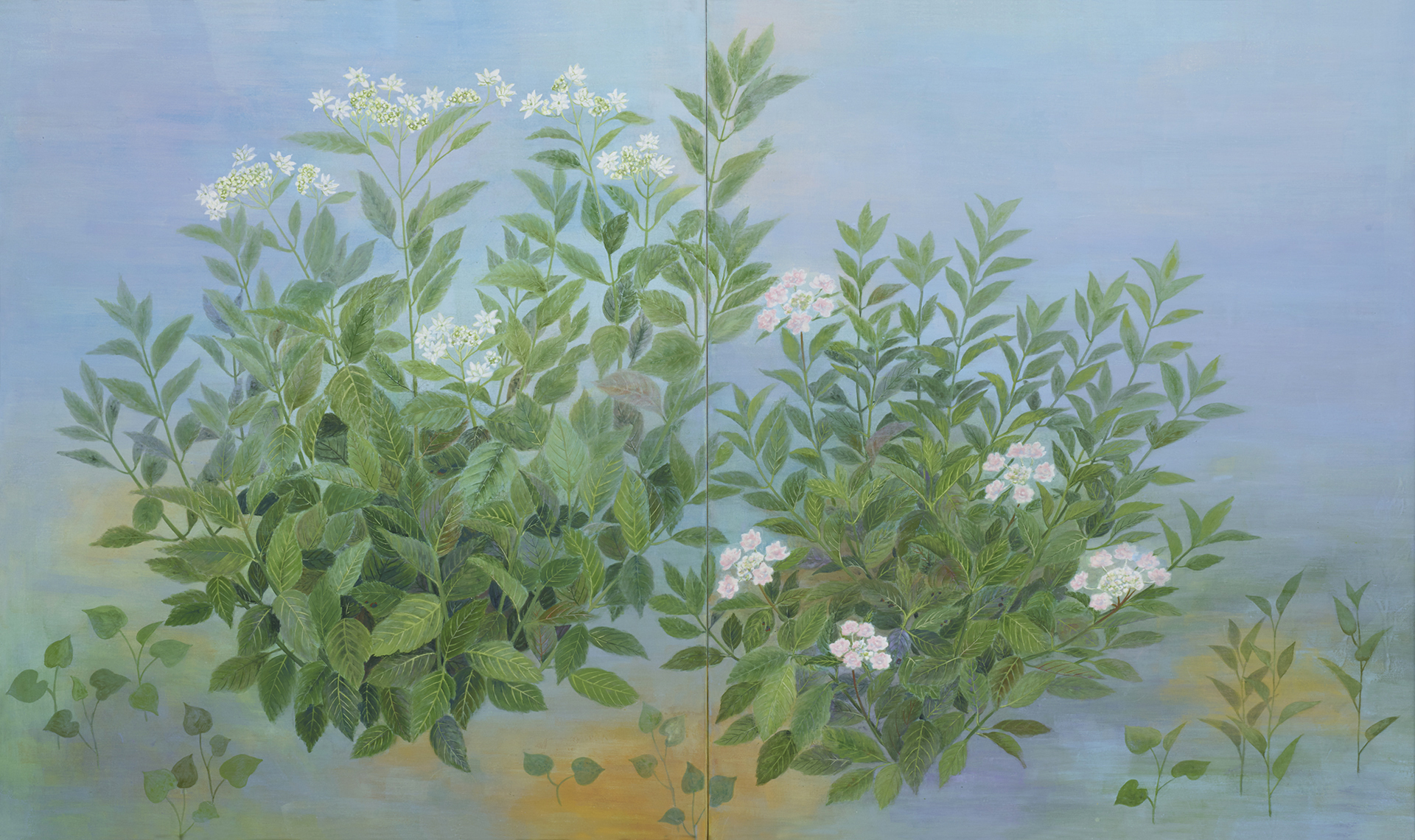 卒業制作にあたり、家族が全面協力してくれた。妹がモデルになってくれ、作成場所の花畑まで両親が連れていってくれた。筆をとっている時、私は今まで皆に応援してもらい、助けてもらっていたんだと実感した。卒業制作で表現したかった想いは“感謝の気持ち”です。やさしい穏やかな色で表現したくて精一杯描いた作品です。