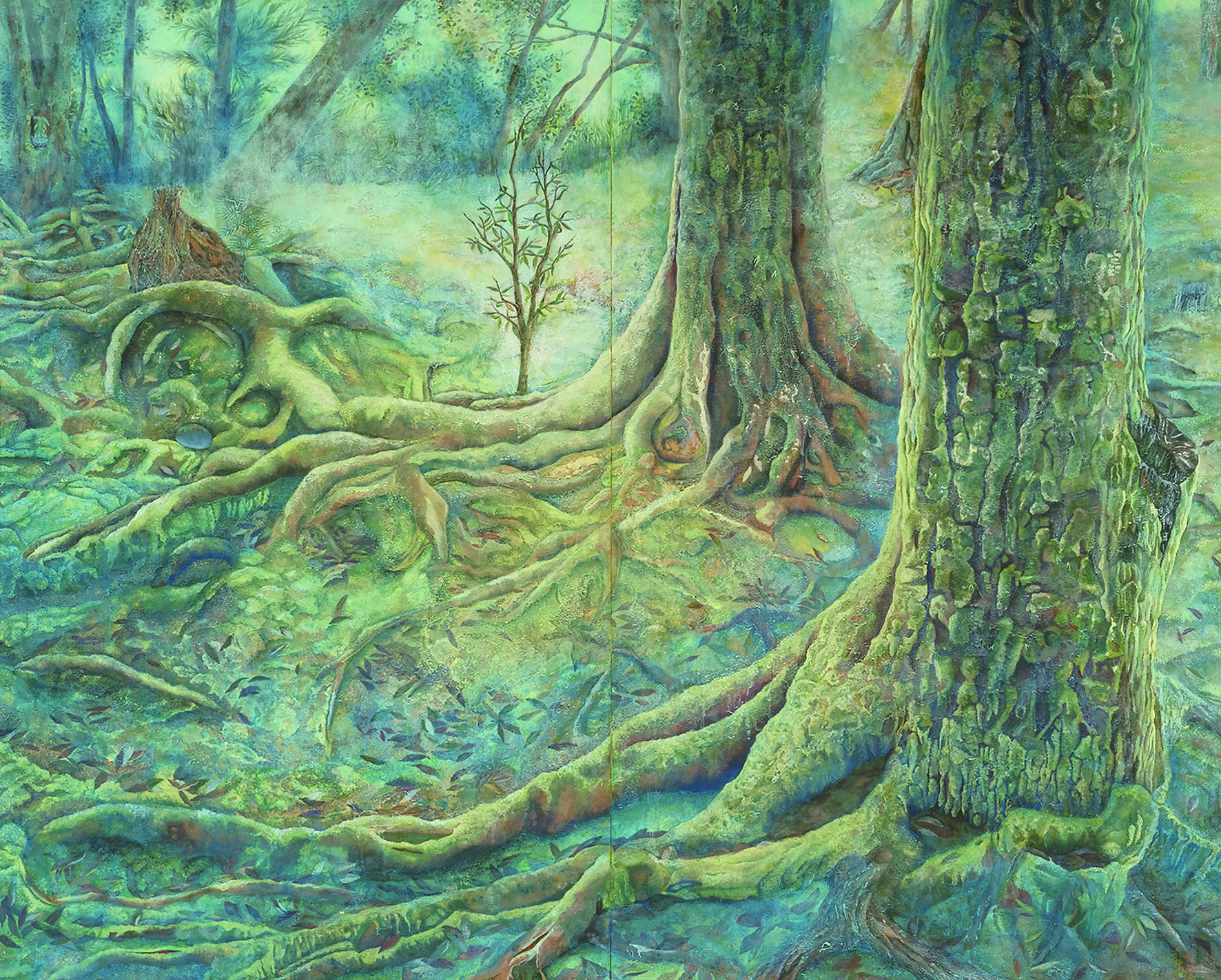 目の覚めるような真っ赤なショウジョウトキや、見事に育ったさるすべりの樹など、「描きたい」と思わせてくれる個性的な良いモチーフに出会えたことで、この作品が生まれました。それぞれのモチーフの形や色などの魅力や個性を活かした絵にすることを第一に考え、制作を行いました。
