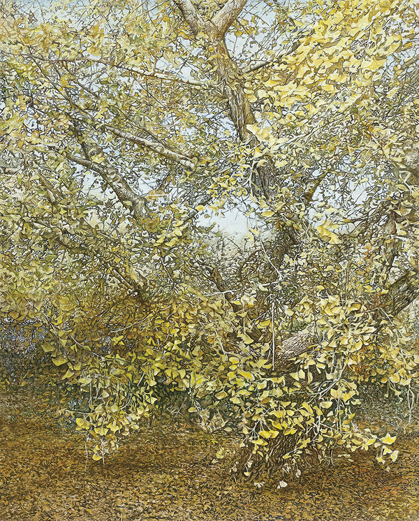 近隣の風景をモチーフに、奥行きや広がりのある空間を求め、線、形と色面による幾何学的抽象表現を試みた。具体的イメージをかすかに残しながら多視点構成による1枚の絵画空間を創ろうとした。